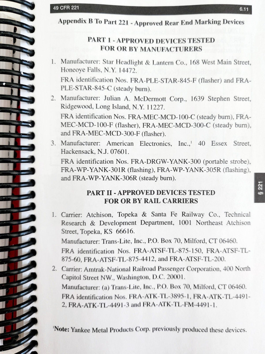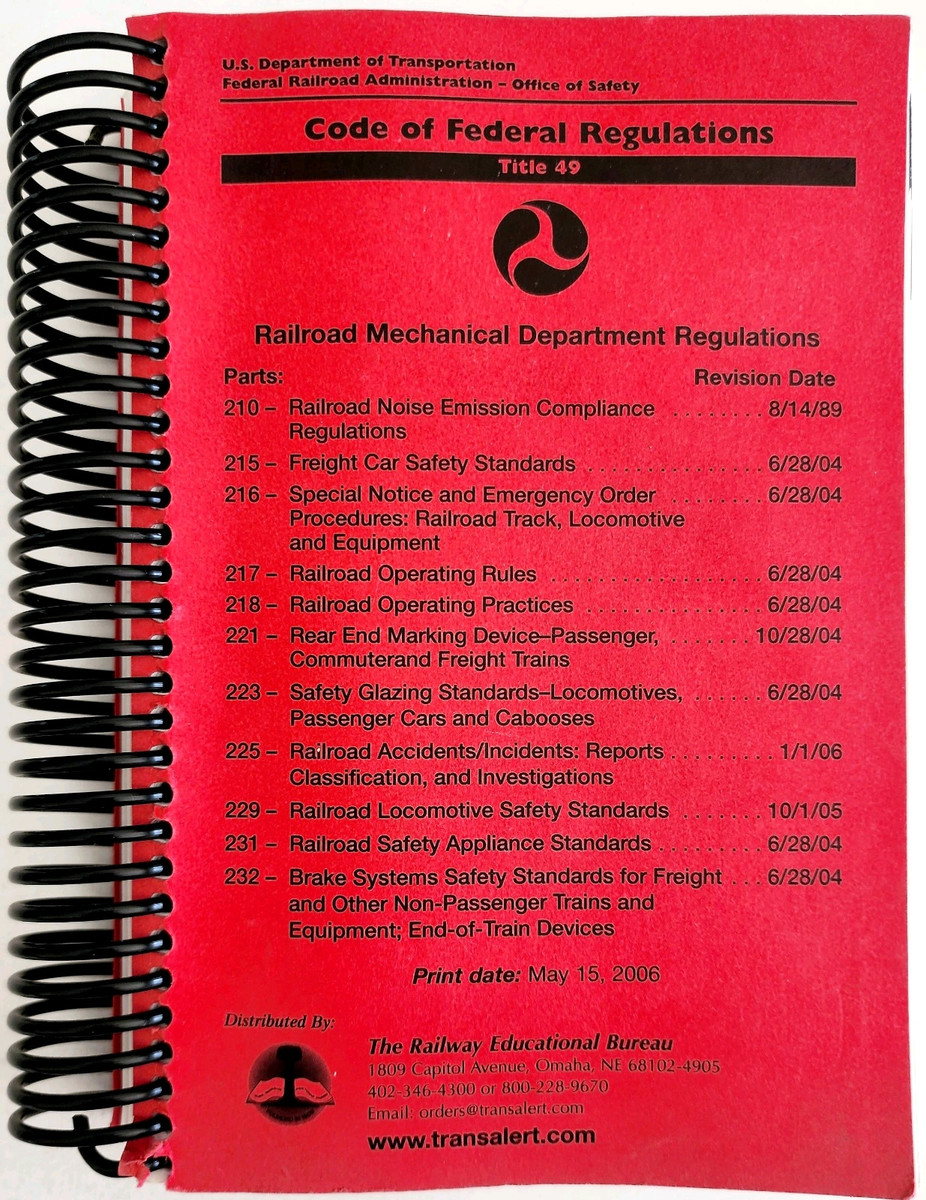 2006 Railroad Locomotive Code Of Federal Regulations Book PB Trains US DOT F4