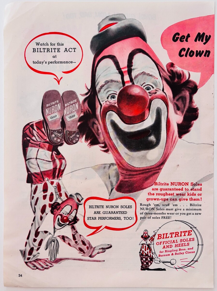 1953 Biltrite Advertisement Lou Jacobs Ringling Brothers Circus Clown Mask F15S