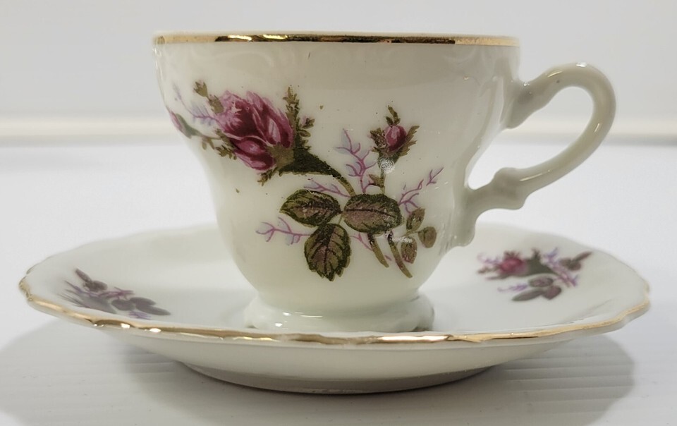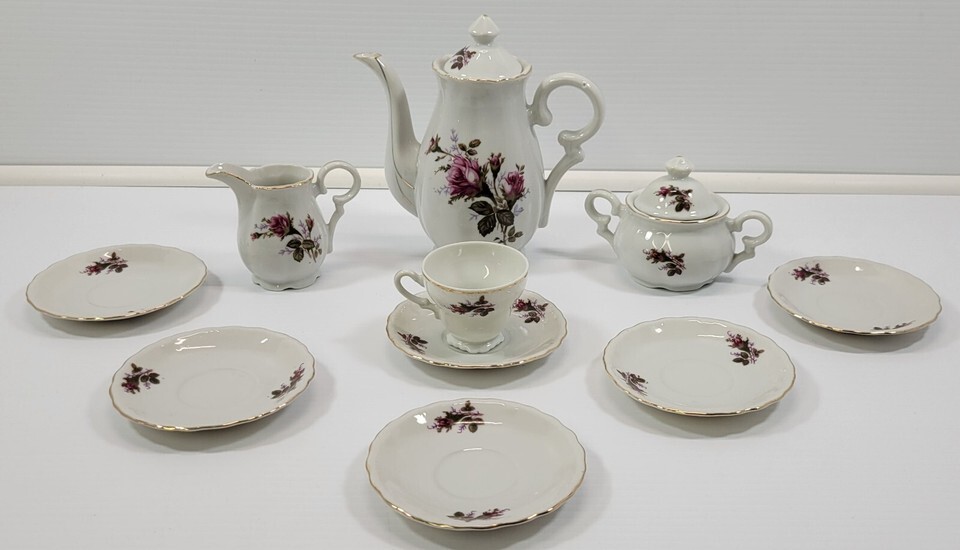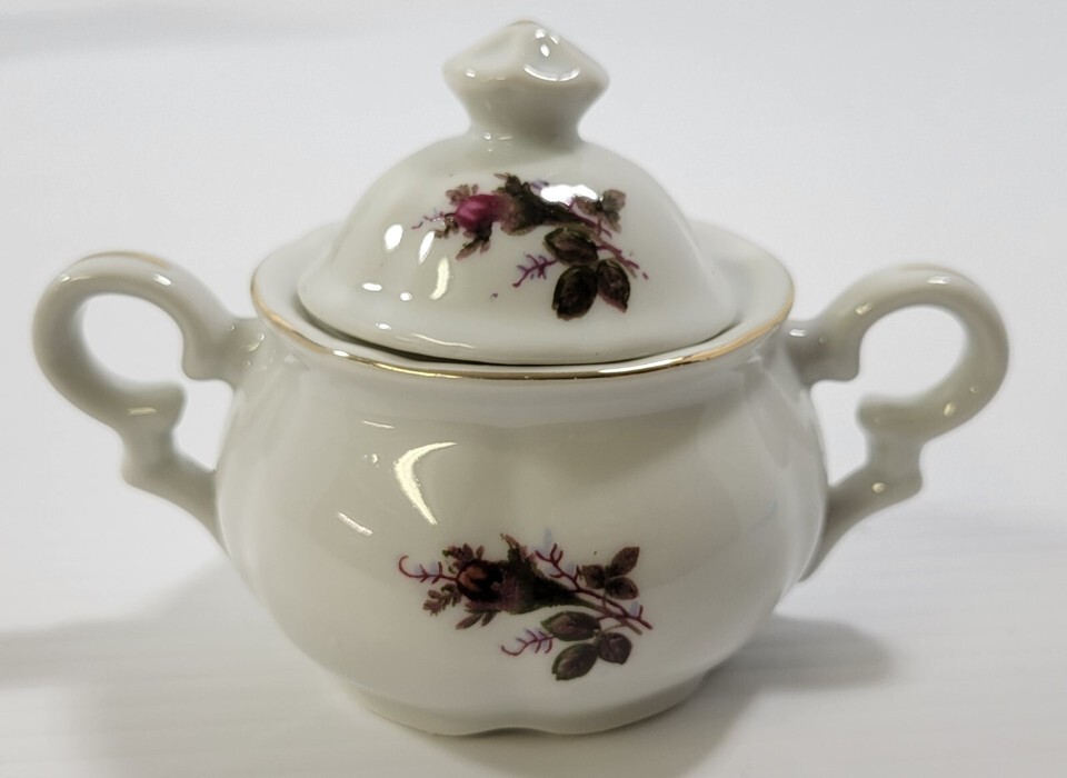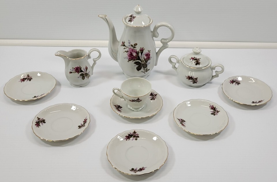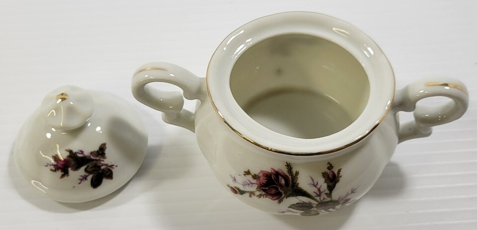 Q) Incomplete Vintage Lavender Moss Rose Bone China Tea Demitasse Cup Pot Sugar