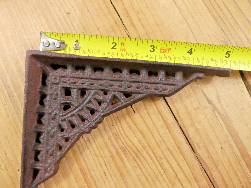 EACH BRACKETS MEASURE JUST OVER 4" FROM TOP TO BOTTOM AND EXTENDS 5" FROM THE WALL!