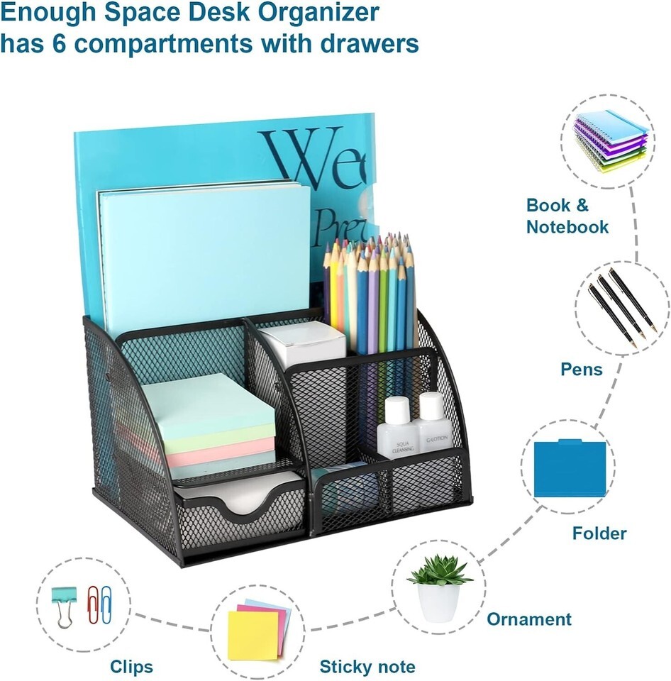 Organizer Artifact: This desk storage organizer is suitable for any place you need, and the mesh desktop organizer is suitable for office, work desktop, school, classroom, bookshelf, studio, etc. In addition, the gorgeous desk accessories make it more than just a storage tool, is a decoration, bringing a touch of bright color to the dull office environment.