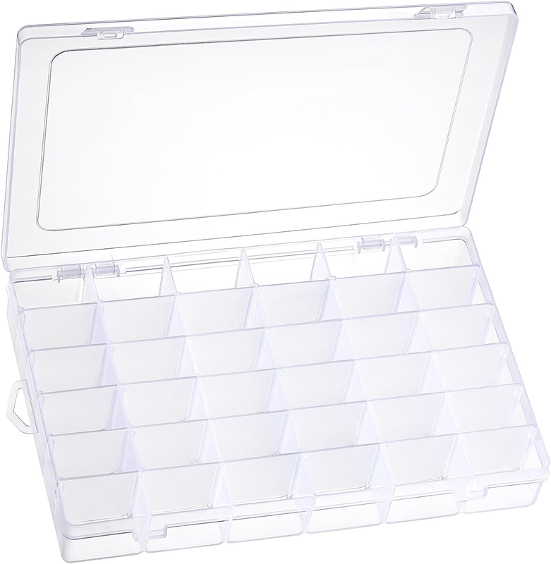 2 Pack 36 Grids Clear Plastic Organizer Box with Adjustable Dividers, Small Craft Organizers and Storage, Compartment Container for Bead, Nail, Jewelry, Art, DIY Crafts, Fishing Tackle, Small Items