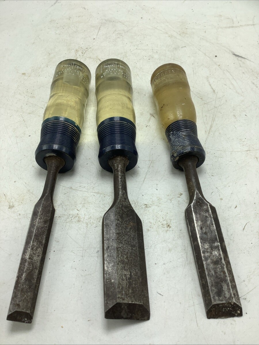 Lot Of 3 Vintage Sears Craftsman Wood Chisels USA WF 36804 36822 36824