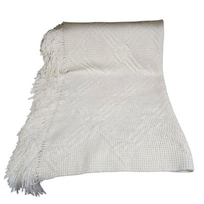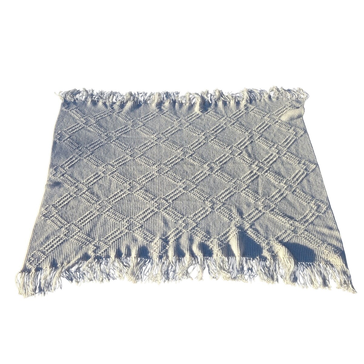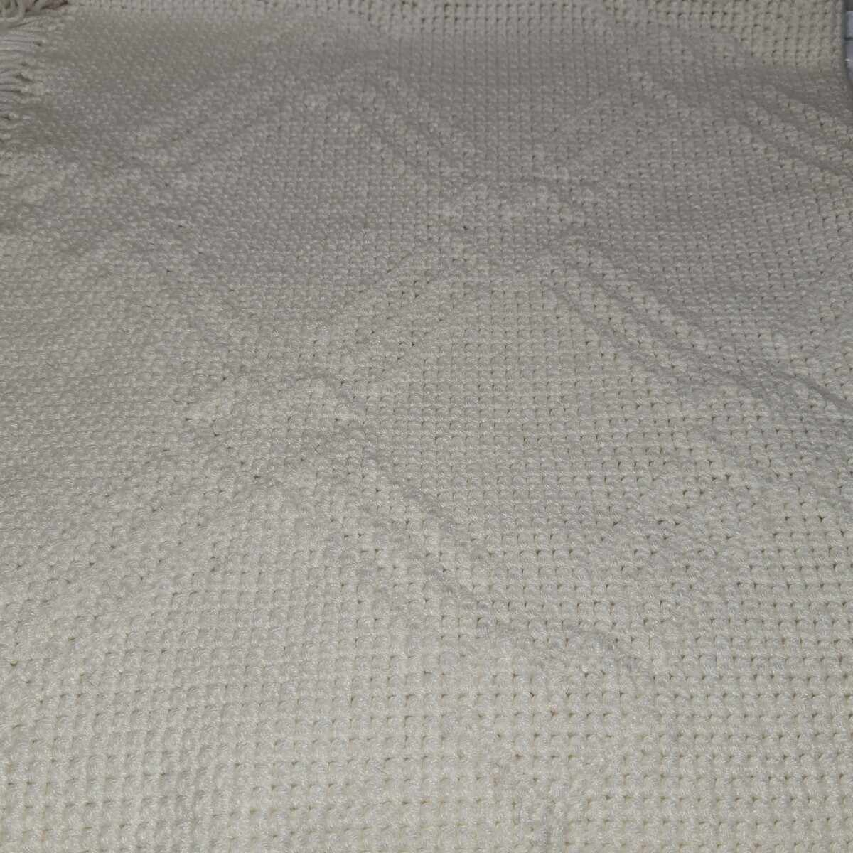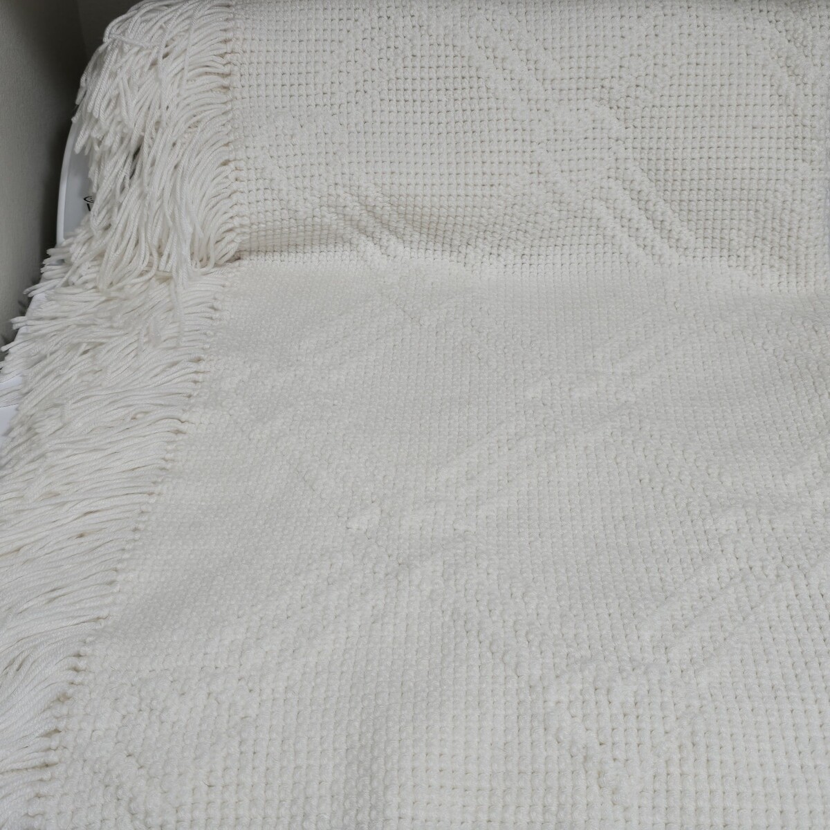 VTG Boho Farmhouse Handwoven Cotton Throw Blanket Diamond Fringe Ivory 42x50