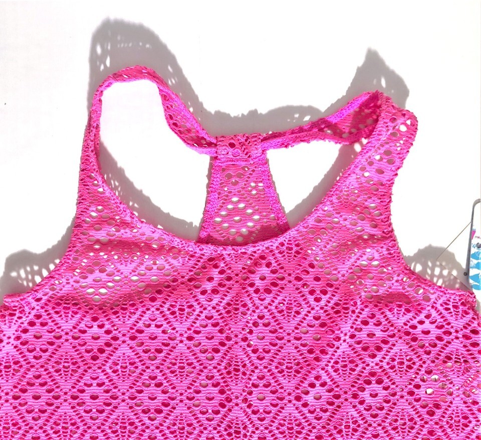 Breaking Waves Bright Pink Swim Wear Tank Top Shirt size 12 Girls /Juniors NWT