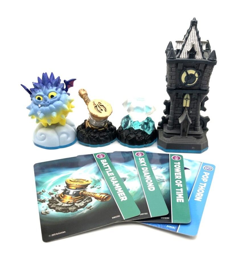 Skylanders Swap Force Tower of Time Adventure Pack Pop Thorn, Battle Hammer, Sky Diamond Activision by Activision. There is no packaging just what you see in the pictures. The figures have been used and there may be minor wear, overall the items are in good clean condition. I have more Skylanders and Video game items listed and combined shipping is added to your cart when you purchase multiple items at my shop.