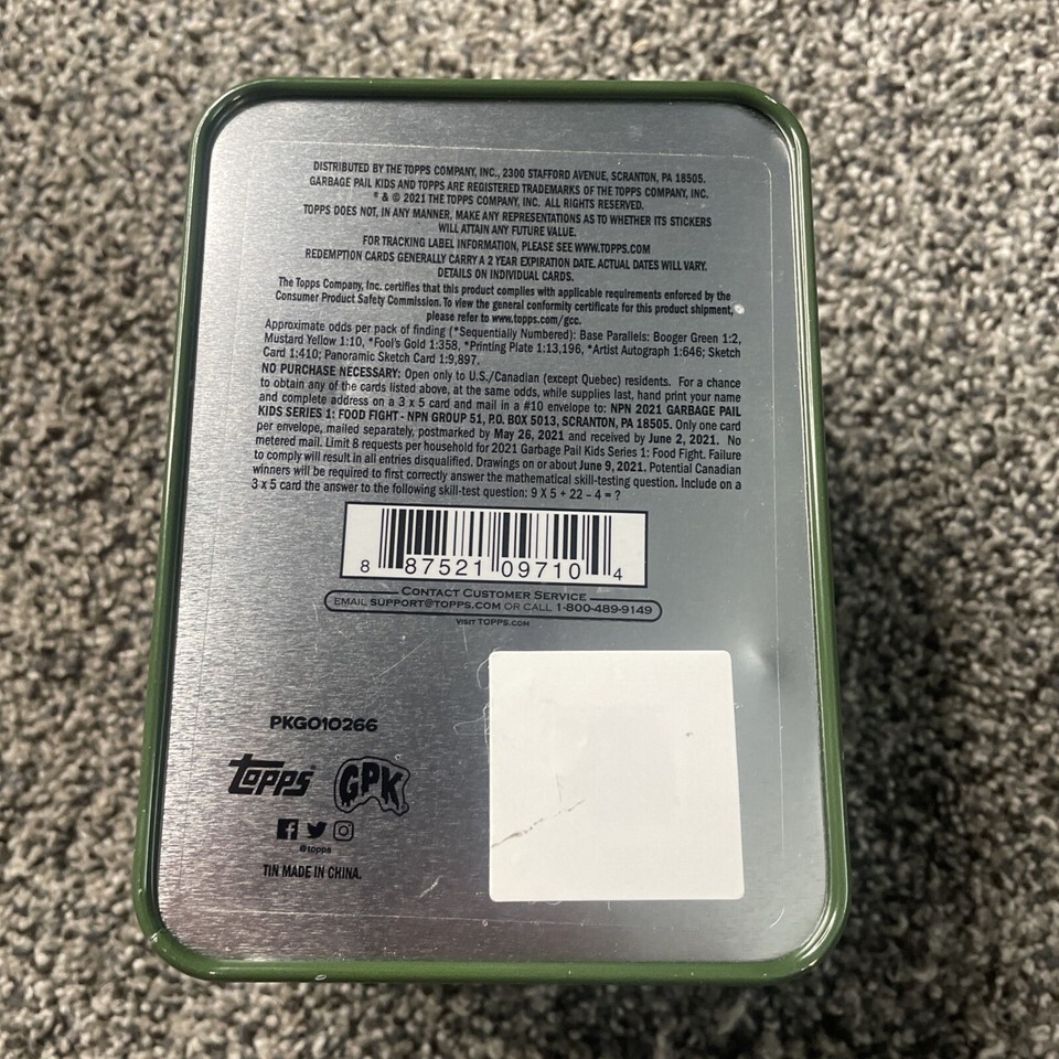 EMPTY 2021 Garbage Pail Kids Blaster Tin Green Food Fight 5”x3.5”x2.75”