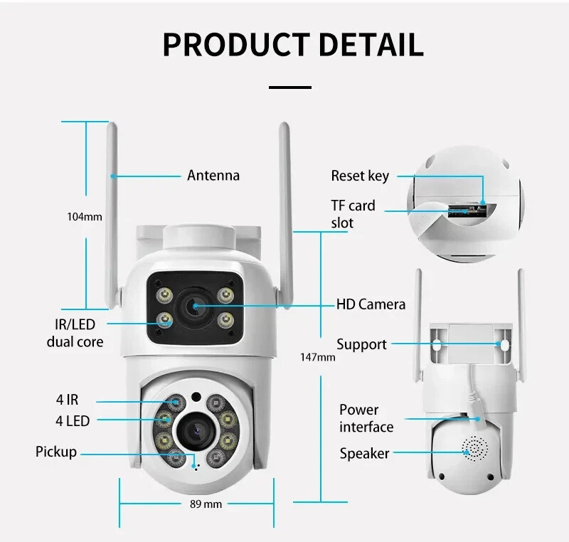 3 x Dual Lens Dual Screen 4MP AI Auto Tracking IP Camera CCTV Surveillance