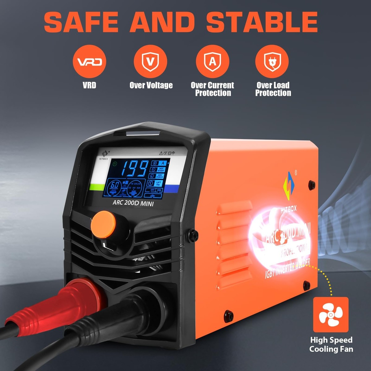 ?Ultra-mini Portable ARC Welder?The welder machiner is compact and light weight. Dimensions: 954inch, Weight: 4.4lbs. The stick welder has an easy to carry adjustable shoulder strap for easy carrying or use between job sites. This welder built in protection equipment internally to prevent over heat, over current to make sure safely operation.
