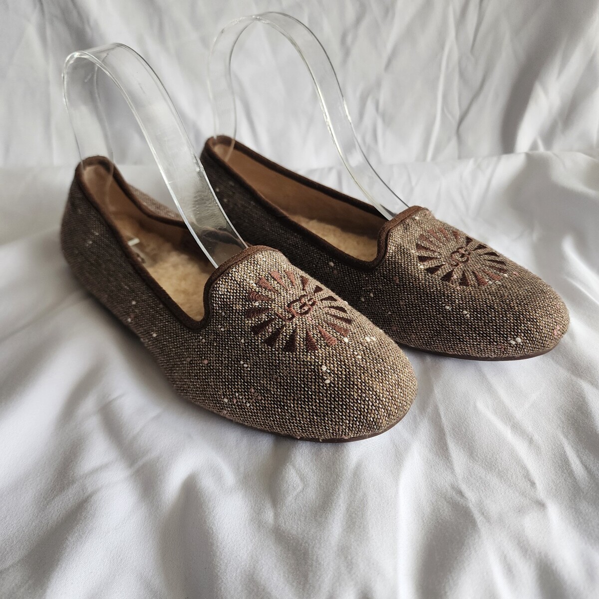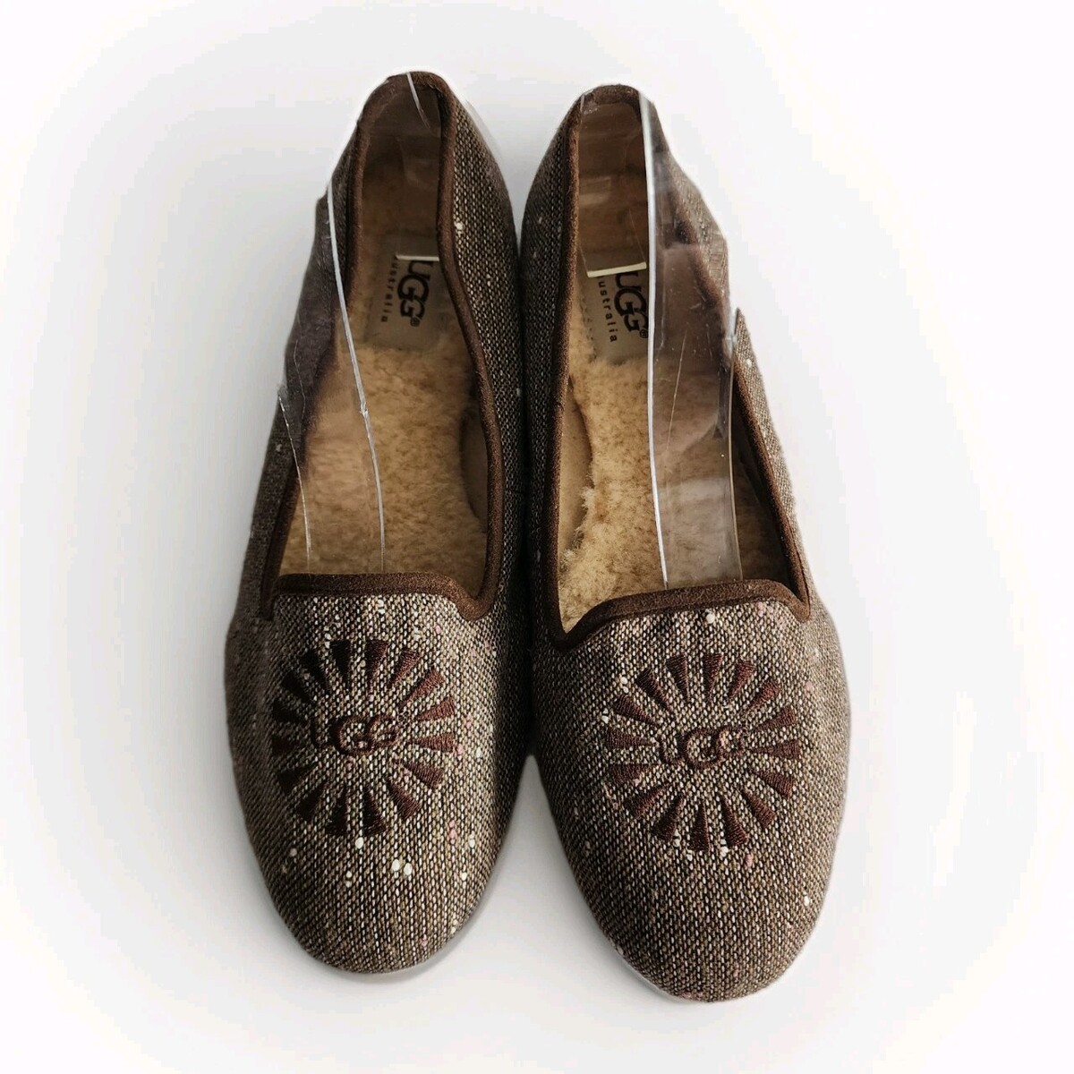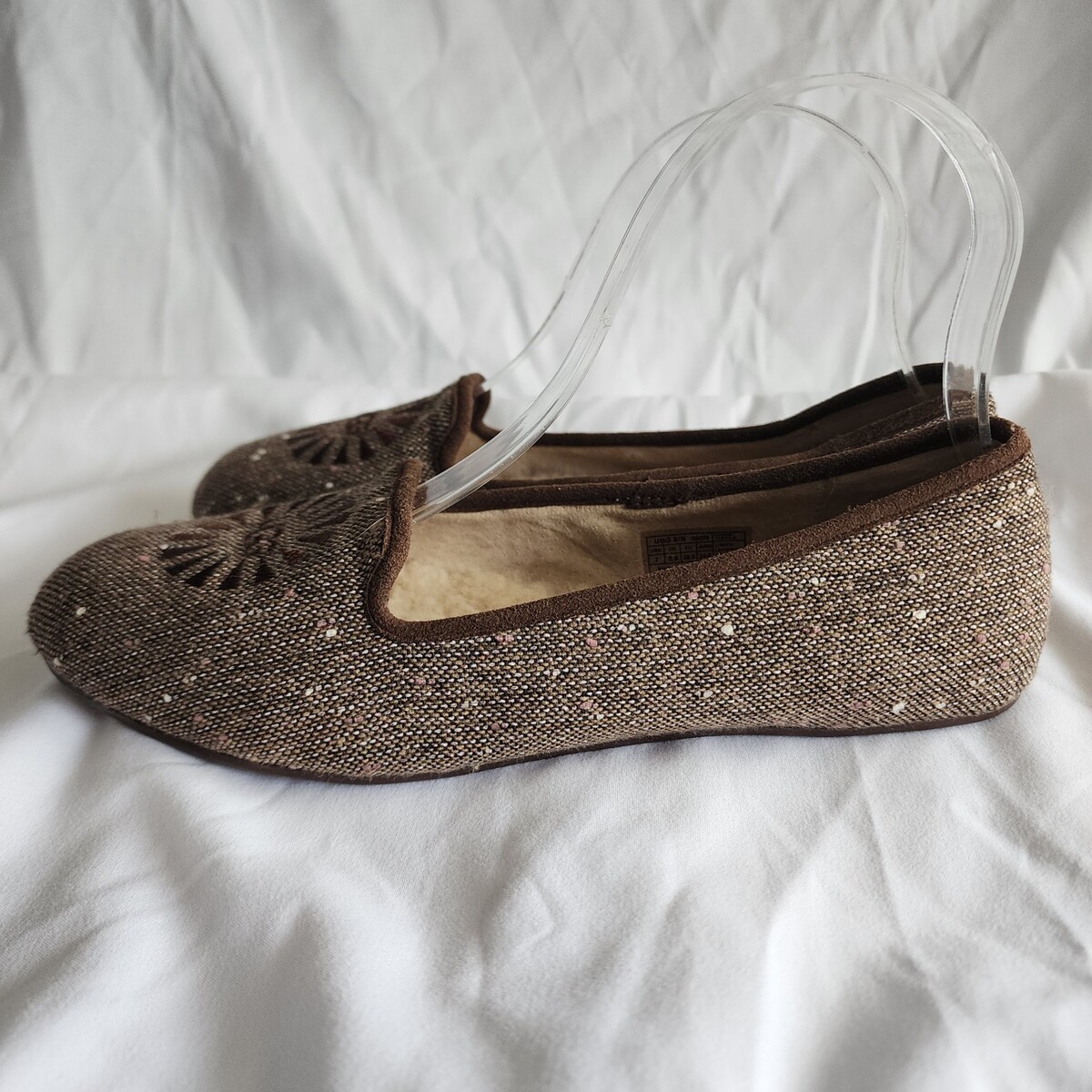 UGG Australia Alloway Flat Slippers Loafers Tweed Sheepskin Inserts Women's Sz 7