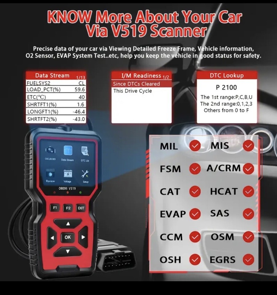 Professional OBD2 Car Scanner Diagnostic Tool. Read and Clear Vehicle Codes.