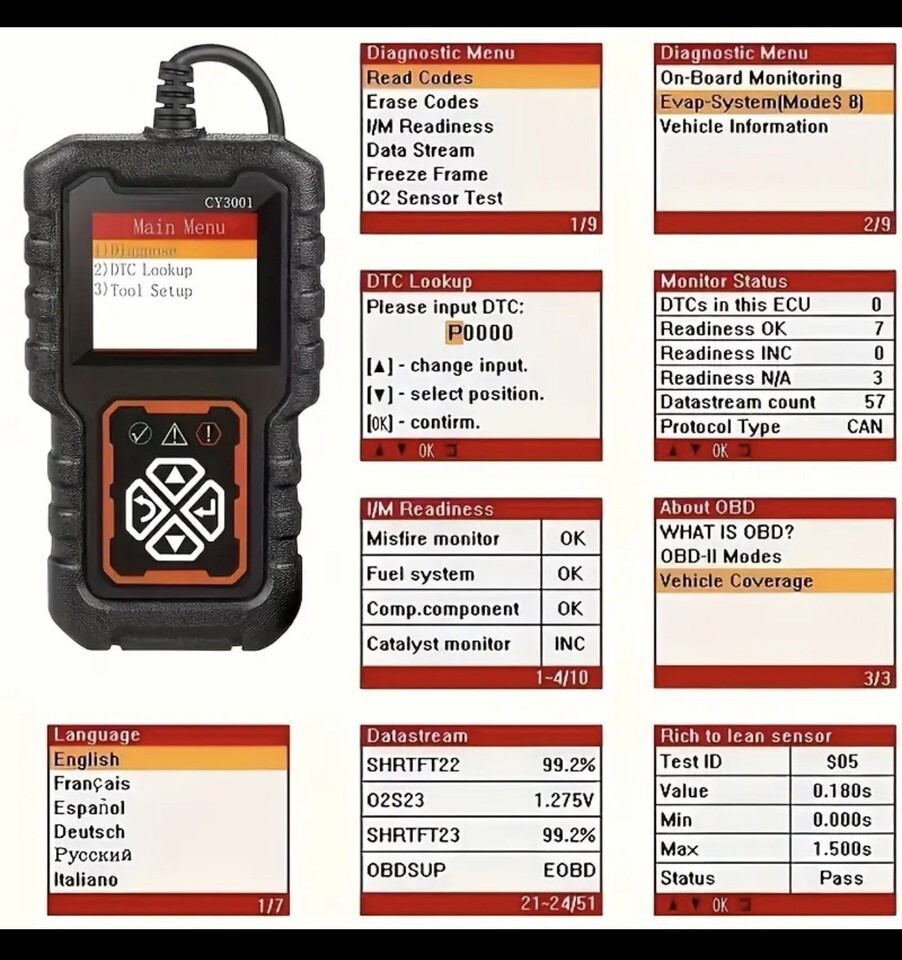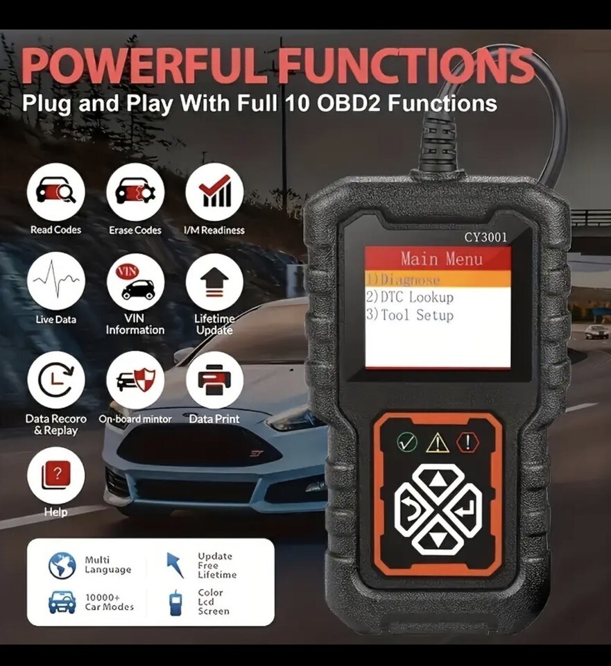 Professional OBD2 Car Scanner Diagnostic Tool. Read and Clear Vehicle Codes.
