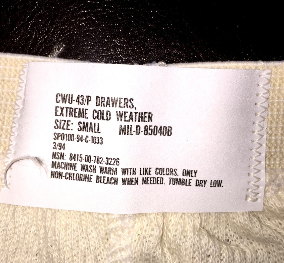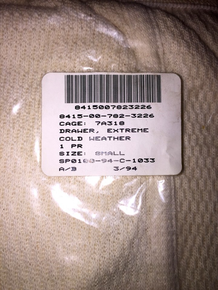 NEW GEN I L1 CWU-43/P EXTREME COLD WEATHER DRAWERS SMALL WHITE LONG JOHNS
