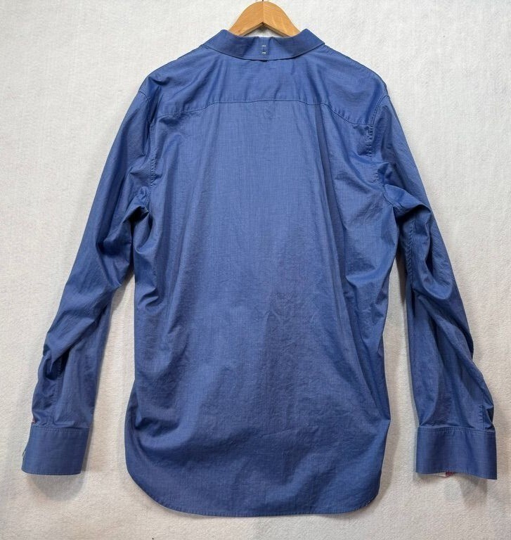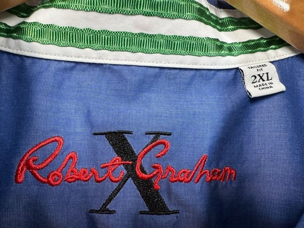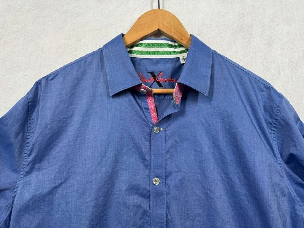 Robert Graham Shirt Bright Blue Flip Cuff Button Front Tailored Fit Men's 2XL