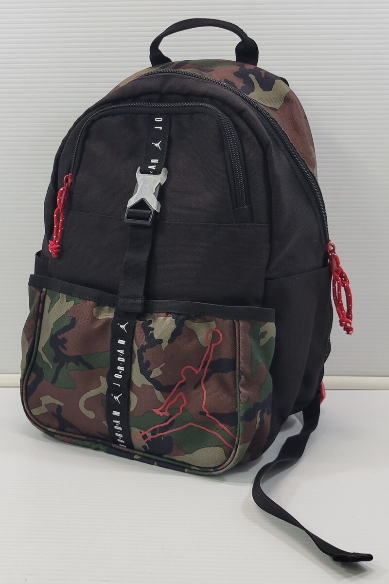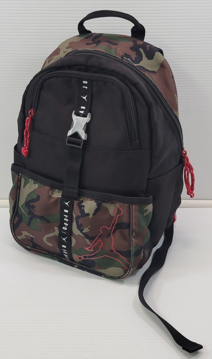 D) Jumpman Air Jordan Black Camouflage Green Camo Child Backpack School Book Bag