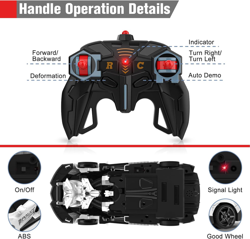 High-quality Rc Car Toy Gifts for Kids: Best gifts choice for your children. Package Content: 1*RC Transform Car, 1*Remote Controller, 1*Screwdriver, 1*Car Battery, 1*Car Battery Charger.