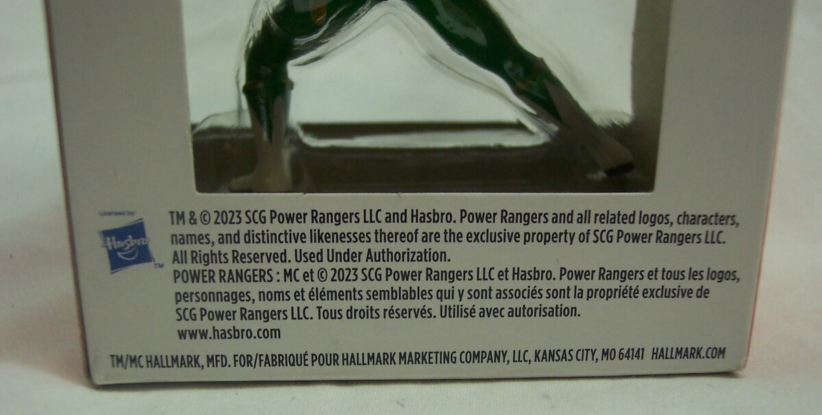 This is a Mighty Morphin Power Rangers GREEN RANGER CHRISTMAS TREE ORNAMENT. Made by Hallmark in 2023. It is NEW in the box. It is about 3 inches tall. AG