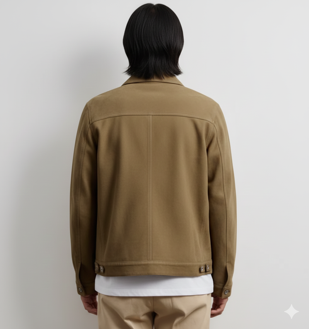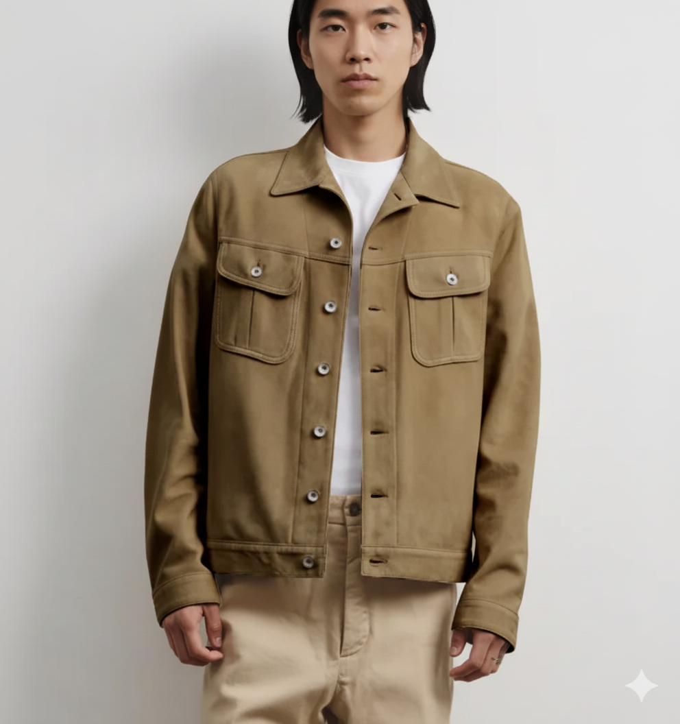 Chaqueta de camionero hecha a mano Causal para hombre color tostado genuino elegante gamuza cuero piel de cordero\MN