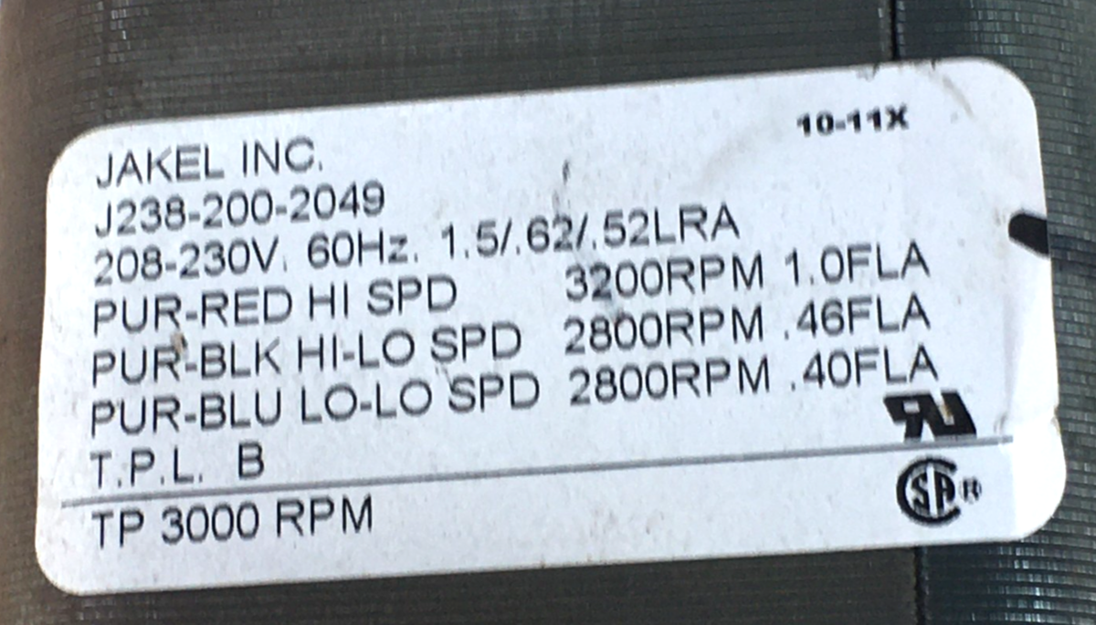 This is Jakel J238-200-2049 Draft Inducer Motor 0131G00001 119455-00 used 208/230V 3000 RPM used part.