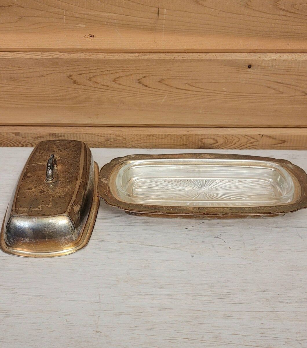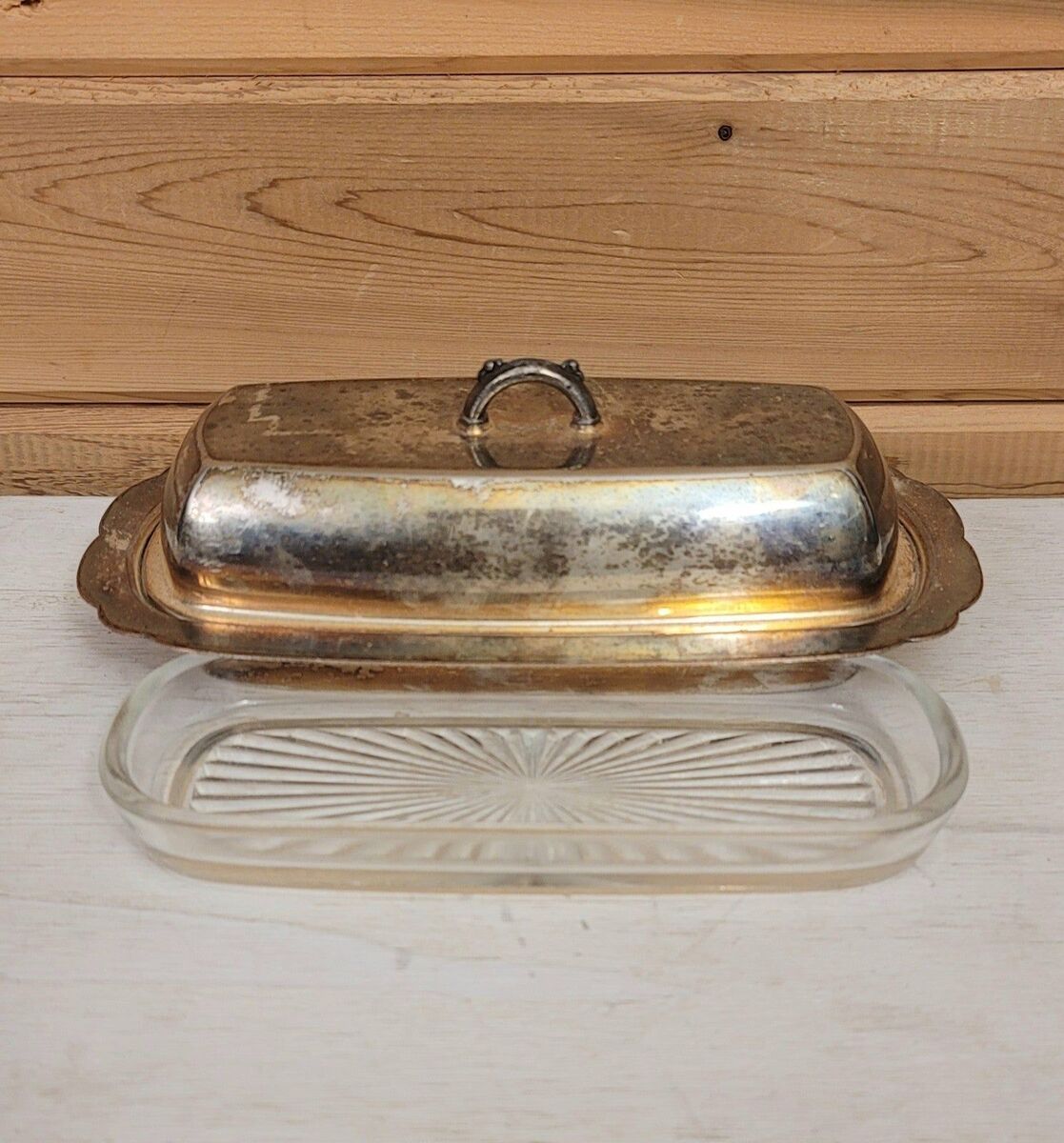 Vintage Silver Plate Butter Dish Cover With Glass Tray 1960