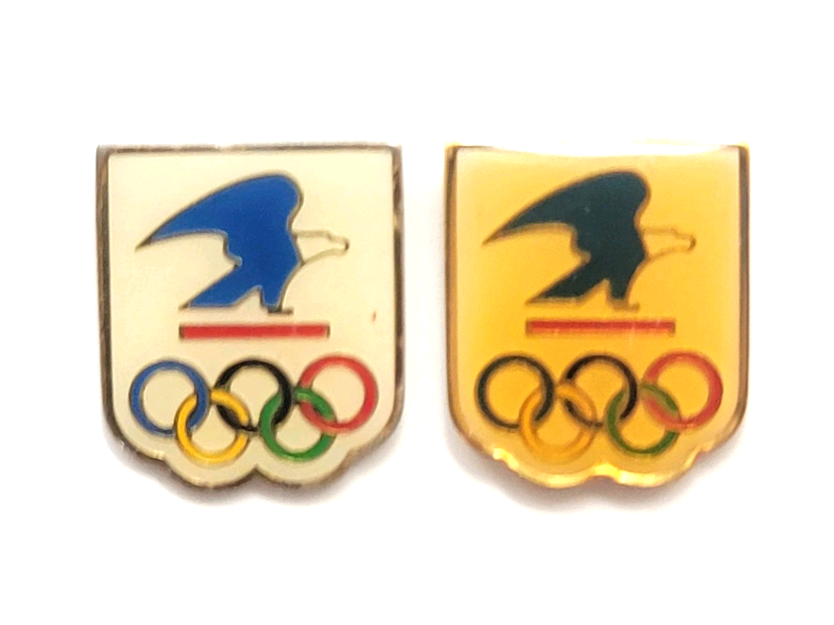 USPS Eagle Olympic Rings Shield Pin Lot 2 Gold Tone USOC Sponsor Sports Vintage