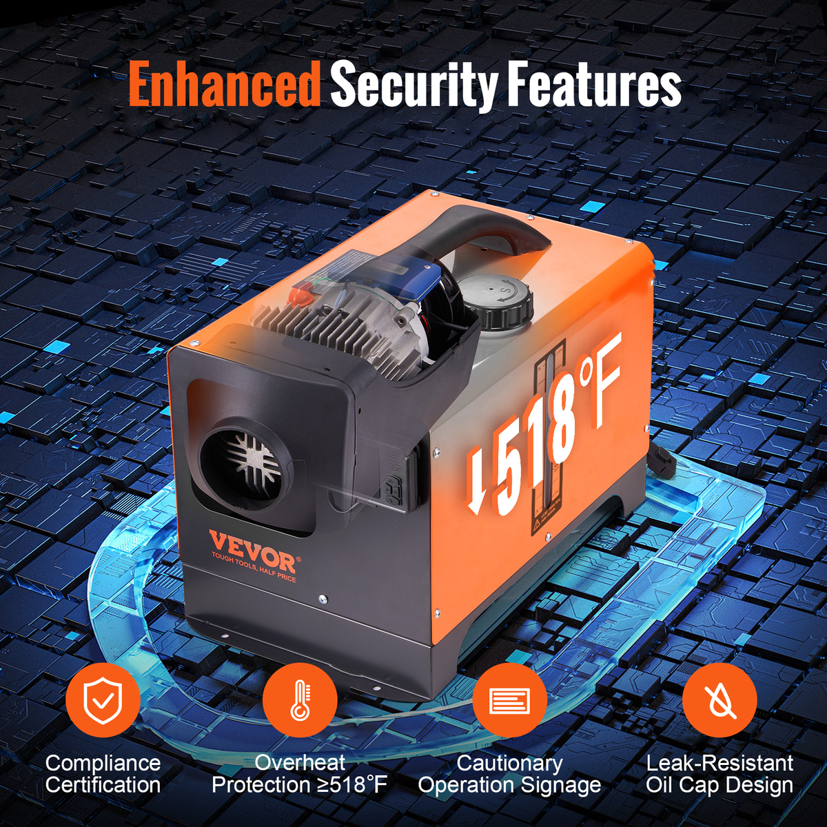 Automatic Altitude Compensation: VEVOR diesel air heater is equipped with automatic altitude compensation, making it suitable for altitudes up to 18,045 feet/5,500 meters. It adjusts its operation based on the altitude, so you don't have to manually control it. Enjoy seamless heating performance even in high-altitude environments.