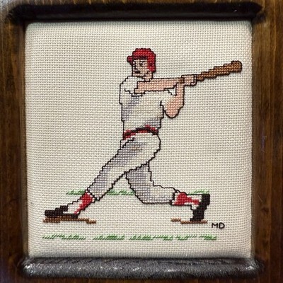 The Vintage Baseball Bat Ball Holder is a charming and unique piece of sports memorabilia that pays homage to the beloved game of baseball. The vintage wooden stand features a place to hang a baseball bat with a ball, all adorned with intricate needlepoint player art. This item would make a great addition to any baseball fan's collection, showcasing their passion for the sport in a stylish and rustic way. It is a conversation starter and a great way to display your love for the game of baseball.