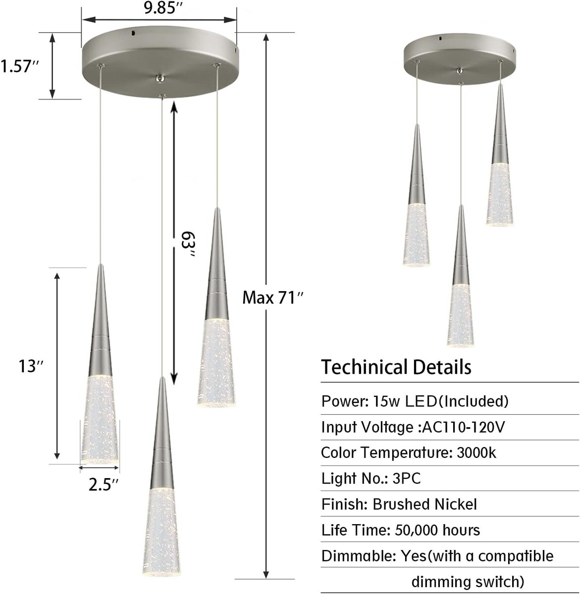 Attractive and Versatile: When the light is on, this 3 light cluster pendant lighting looks really nice and creates nice reflection through the bubbles inside of it, perfect for decoration in kitchen island, bathroom, over the sink or bar counter. Please note that it's an accent light, not designed to light up a whole room