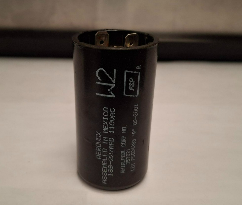 Washer Capacitor, Motor Start, 189-227MFD, for Maytag P/N: 357021 [Used]