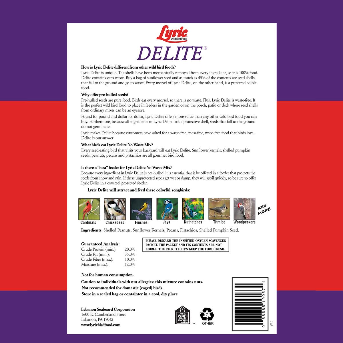 LEBANON SEABOARD SEED 26-47407 Delite Bird Food, 20 lb