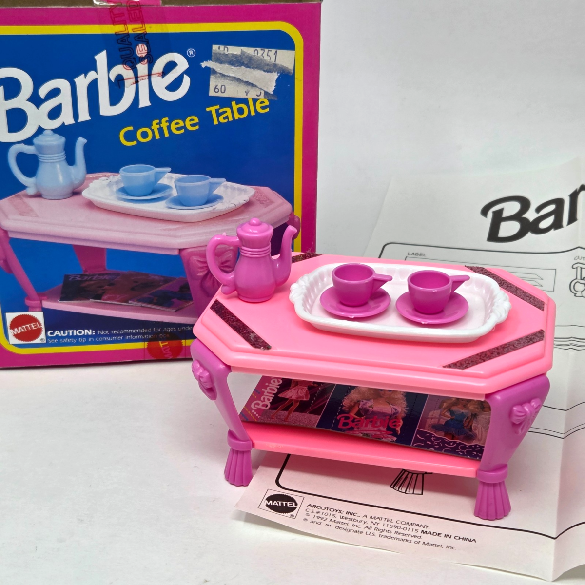 VINTAGE 1992 BARBIE DREAM HOUSE PINK COFFEE TABLE MATTEL # 9351 COMPLETE IN BOX