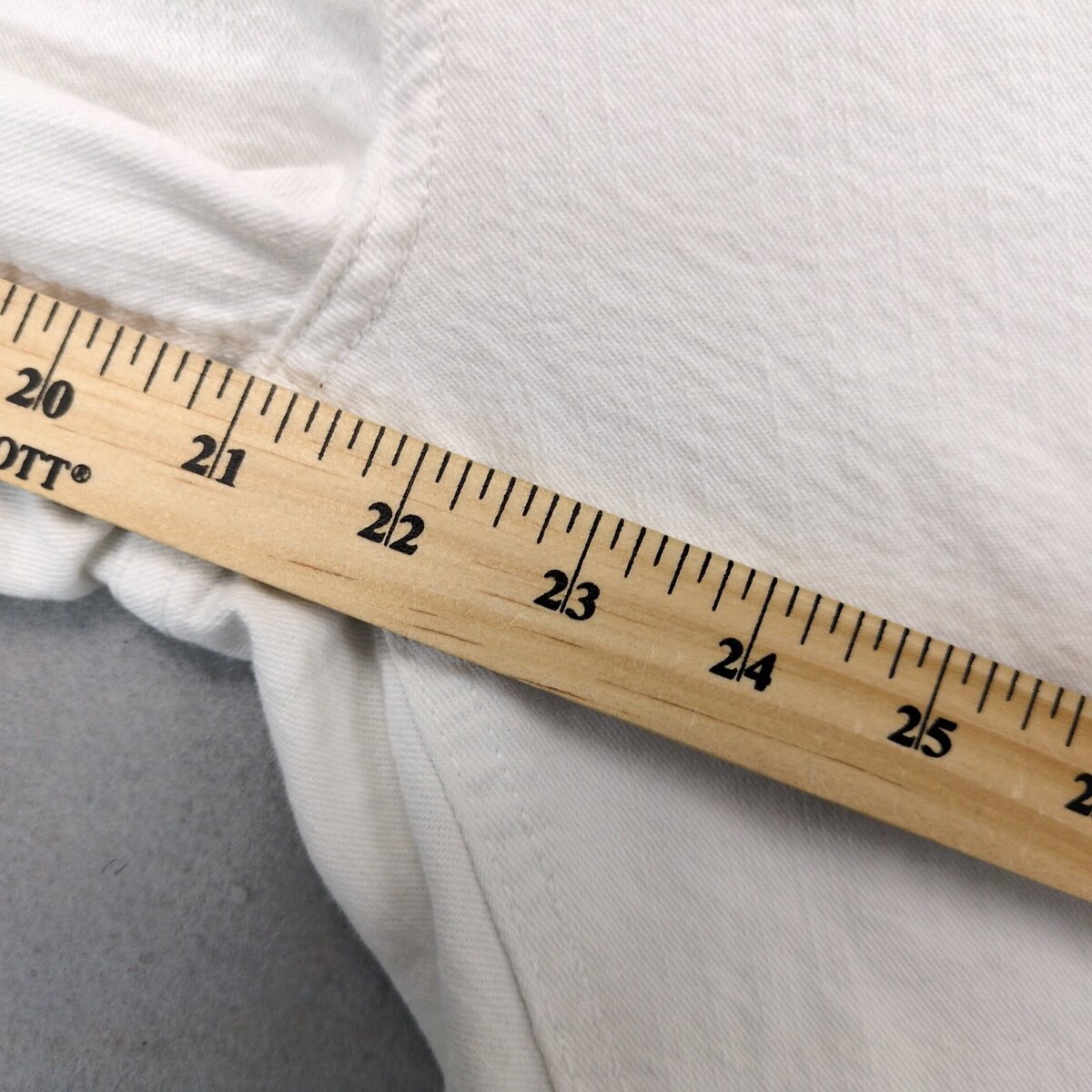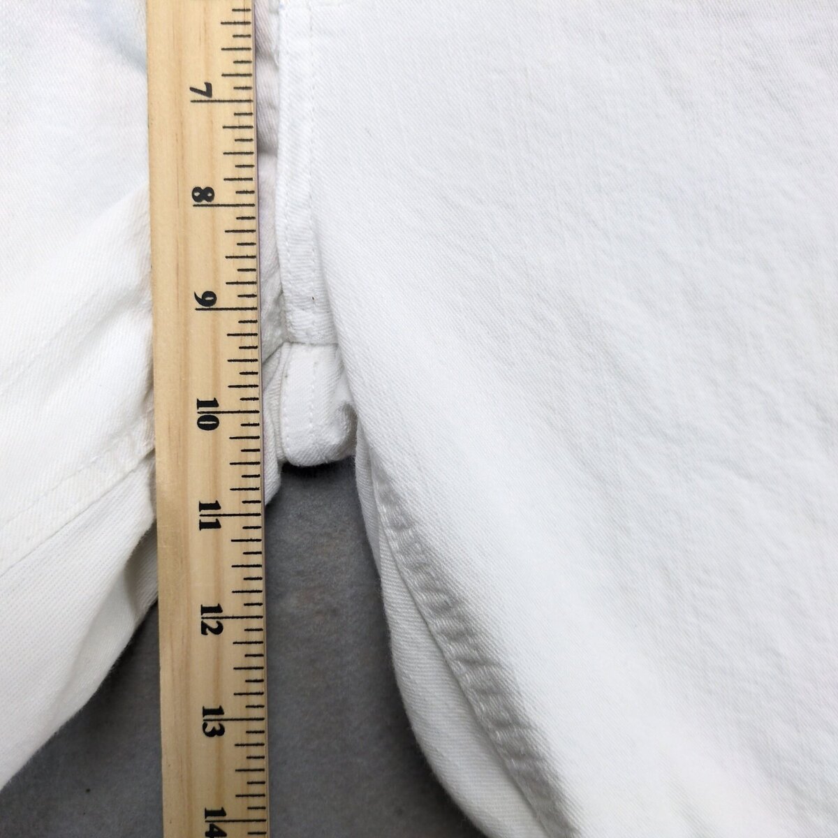 Features: Regular Fit, Mid Rise, White Wash, 5-Pocket Design, Cropped, Easy Care, Pockets, Stretch, Crop, Solid Pattern, 34 in Measured Waist, 21 in Inseam, Button Zip Closure, Contrast Stitching, Embroidered, Logo, Machine Washable