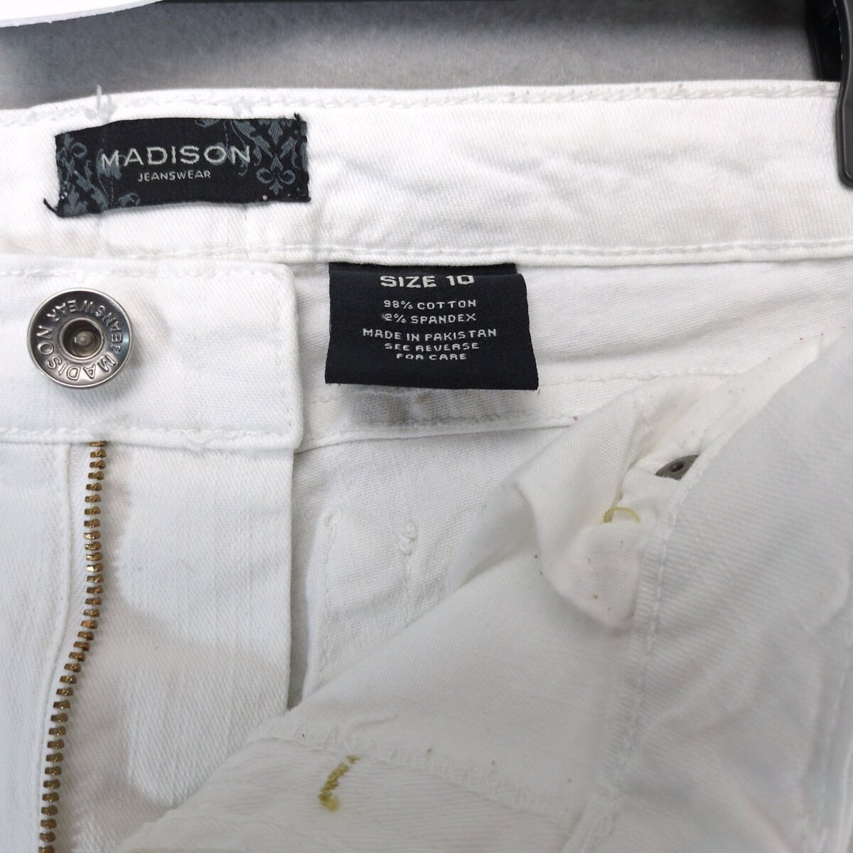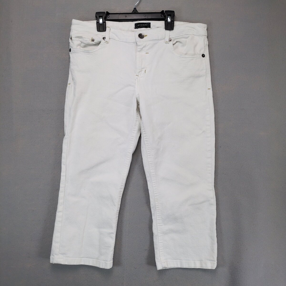 Madison Jeanswear White Denim Crop Carpi Jeans Women's 10 Stretch 34x21" Casual