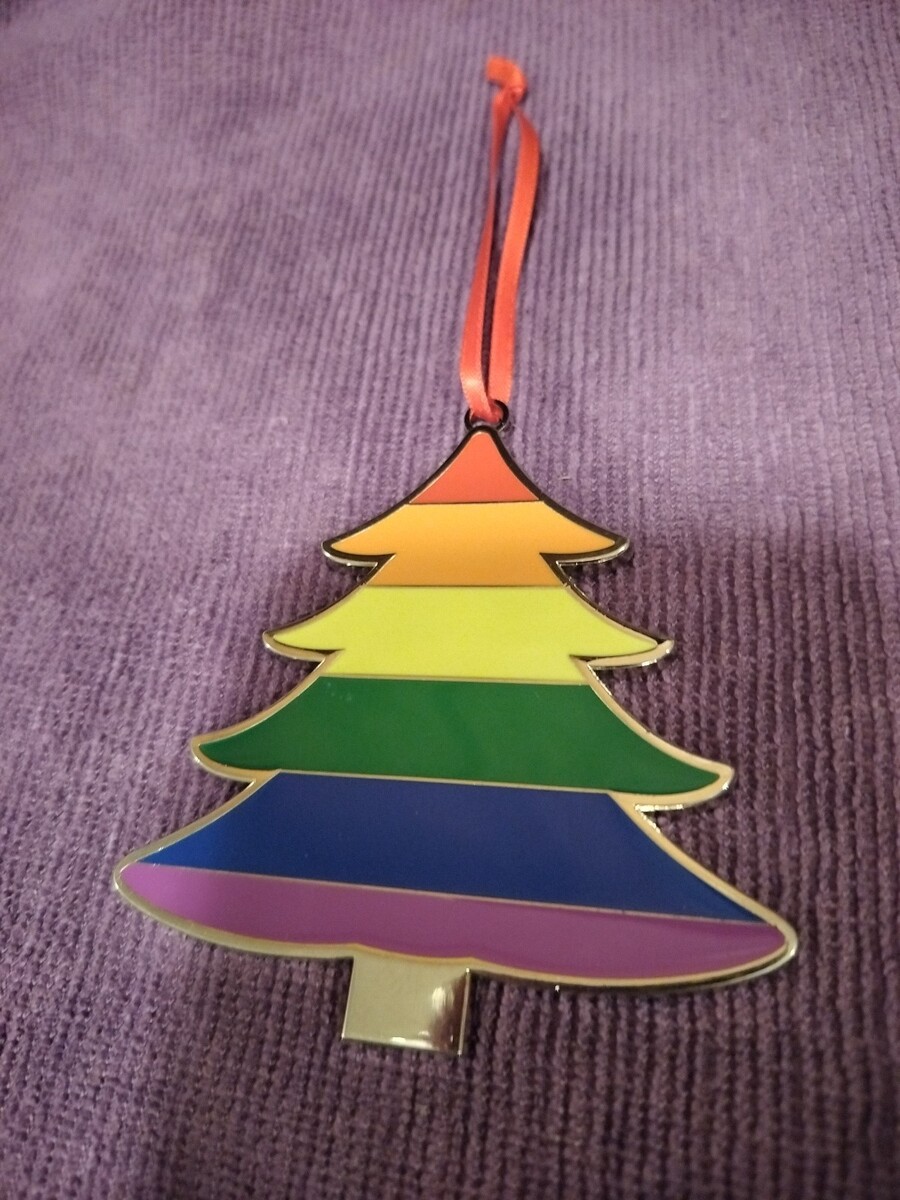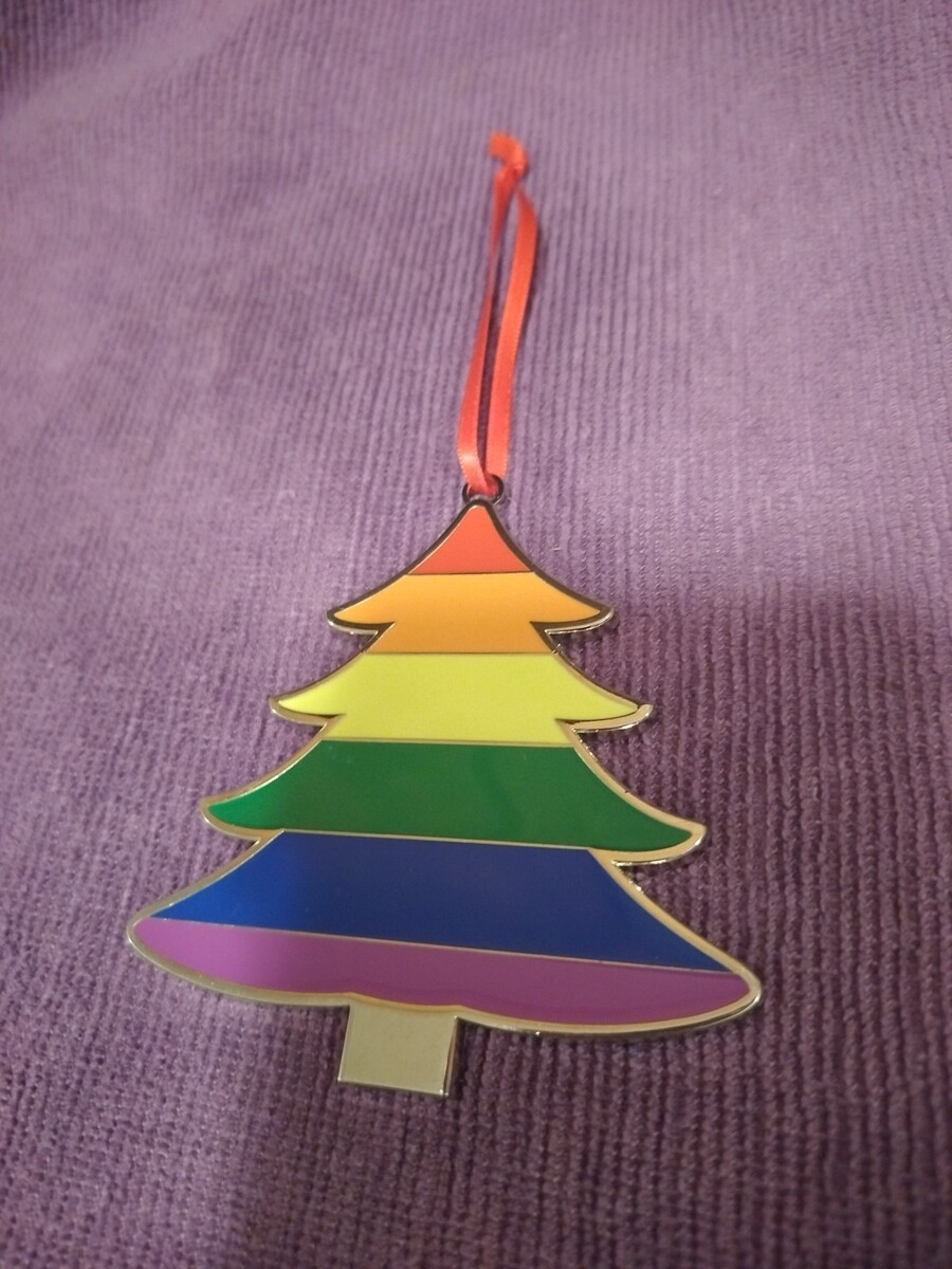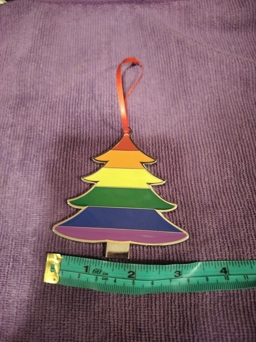 Christmas tree shaped ornament with rainbow colors. Gay Pride flag or Jesse Jackson's Rainbow Coalition.....Or "The Wizard of Oz" with Dorothy singing, "Somewhere Over The Rainbow". Whatever your desire, whether it's rainbows and unicorns or gay pride or anything in between, this is the Christmas ornament for you!