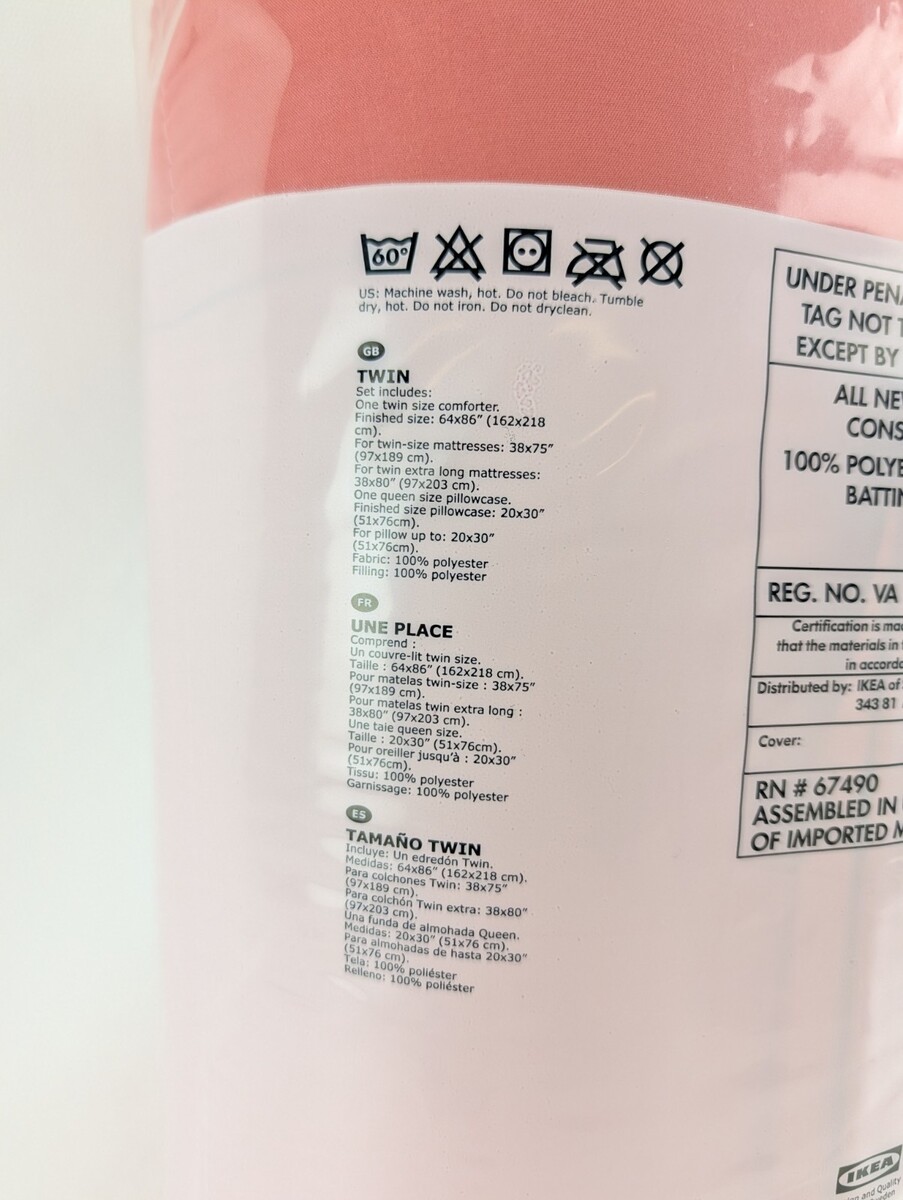 IKEA HALLESPRING Twin Comforter Set + 1 Pillowcase Dusty Pink HÄLLESPRING New