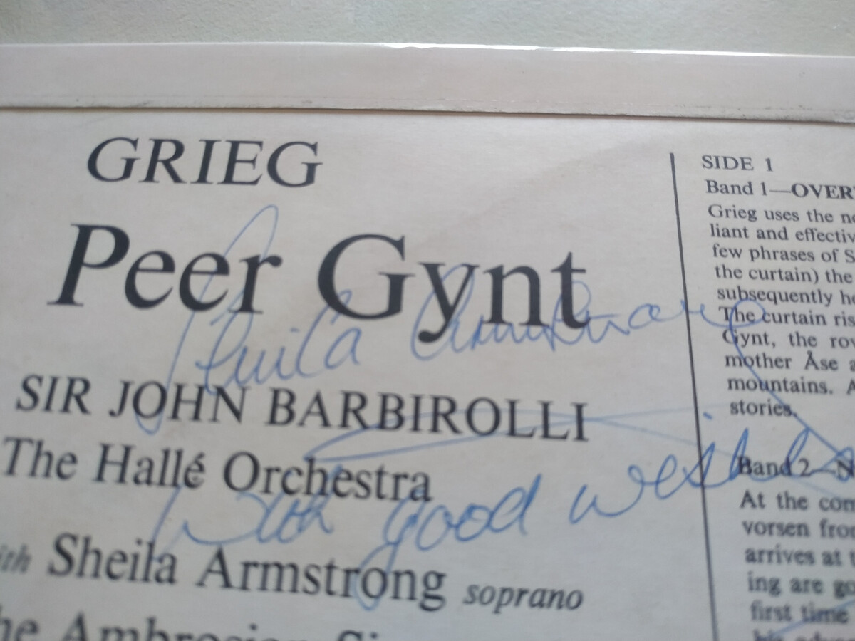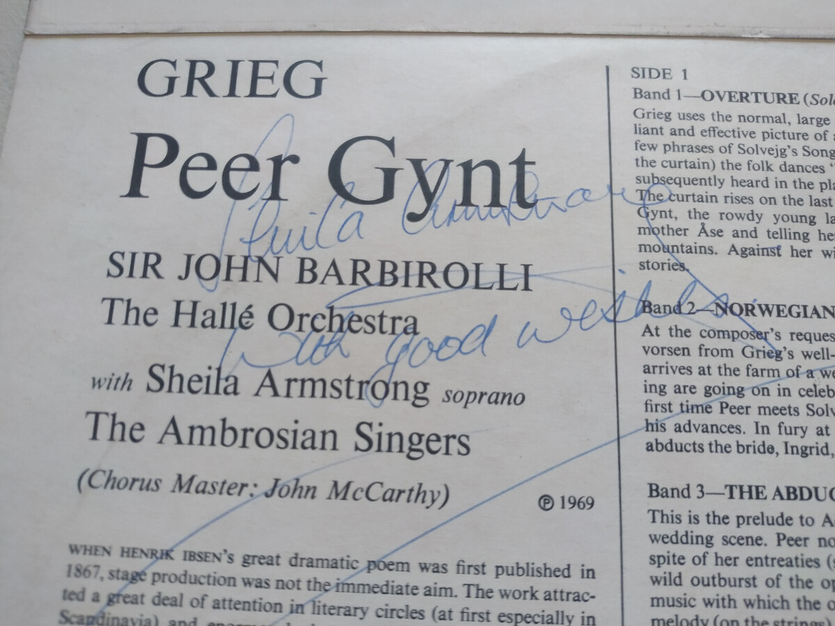 Grieg Gynt Barbirolli - LP 12 " vinyl VG/VG Hand signed by Sheila Armstrong