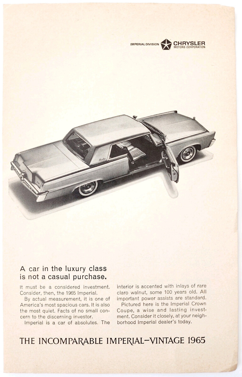 1965 Chrysler Imperial Crown Advertisement and 50 similar items