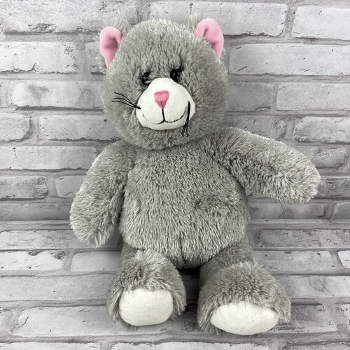 Build A Bear Workshop Kitten Cat Plush Gray Grey White Stuffed Animal 16 in