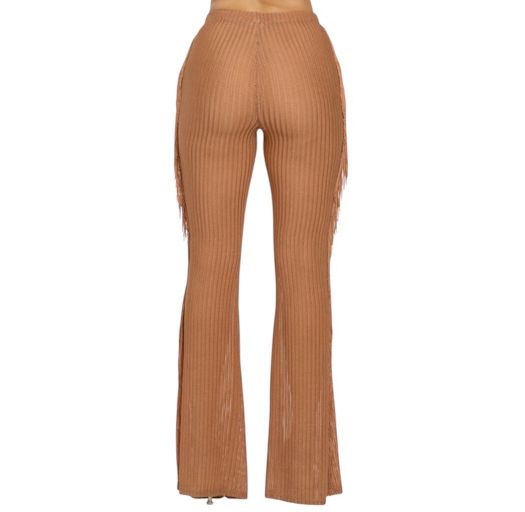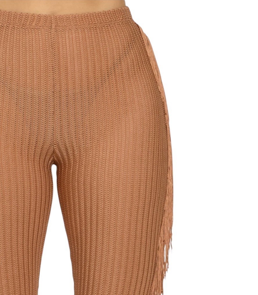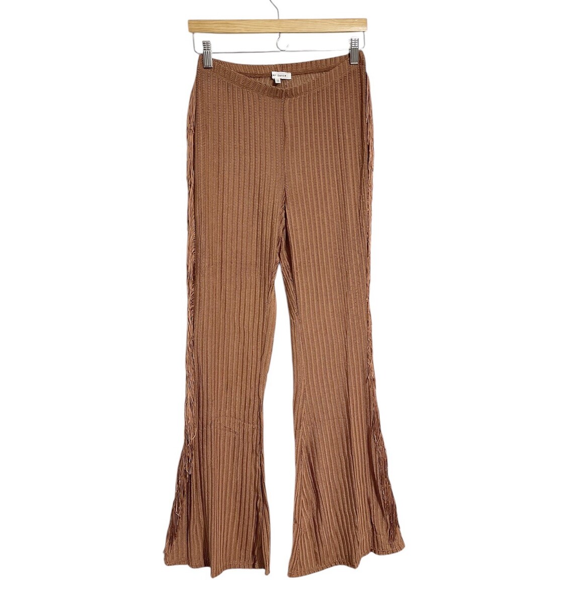 Side Fringe Knit Flare Leg Pants Size M Caramel Brown Sheer Cowgirl Costume NWT