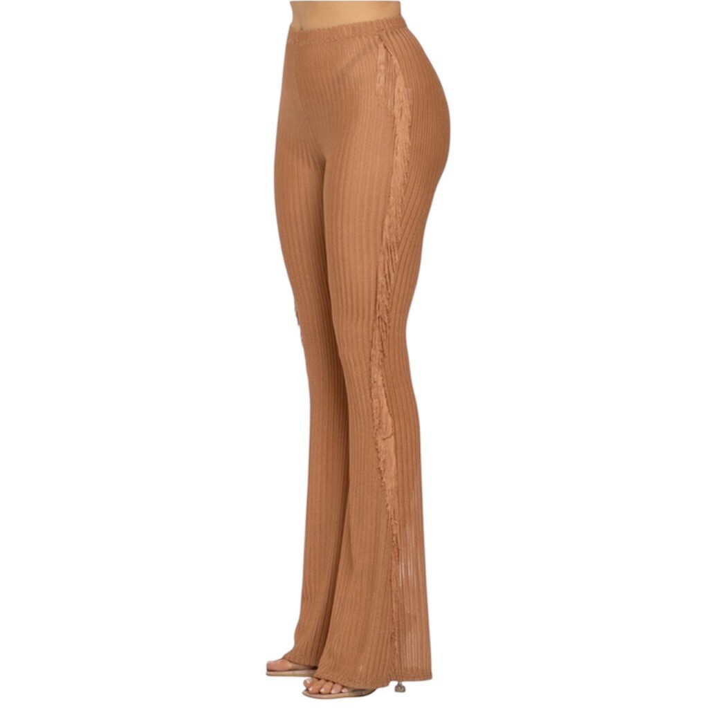 Side Fringe Knit Flare Pants Size M features: