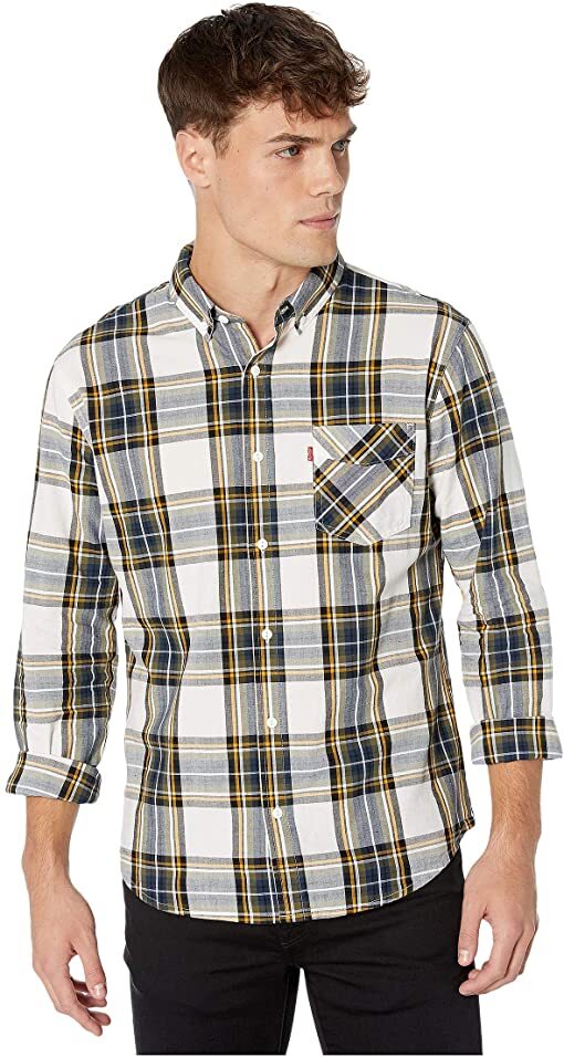 Levis Mens Plaid Button-Down Shirt, Med Marshmallow
