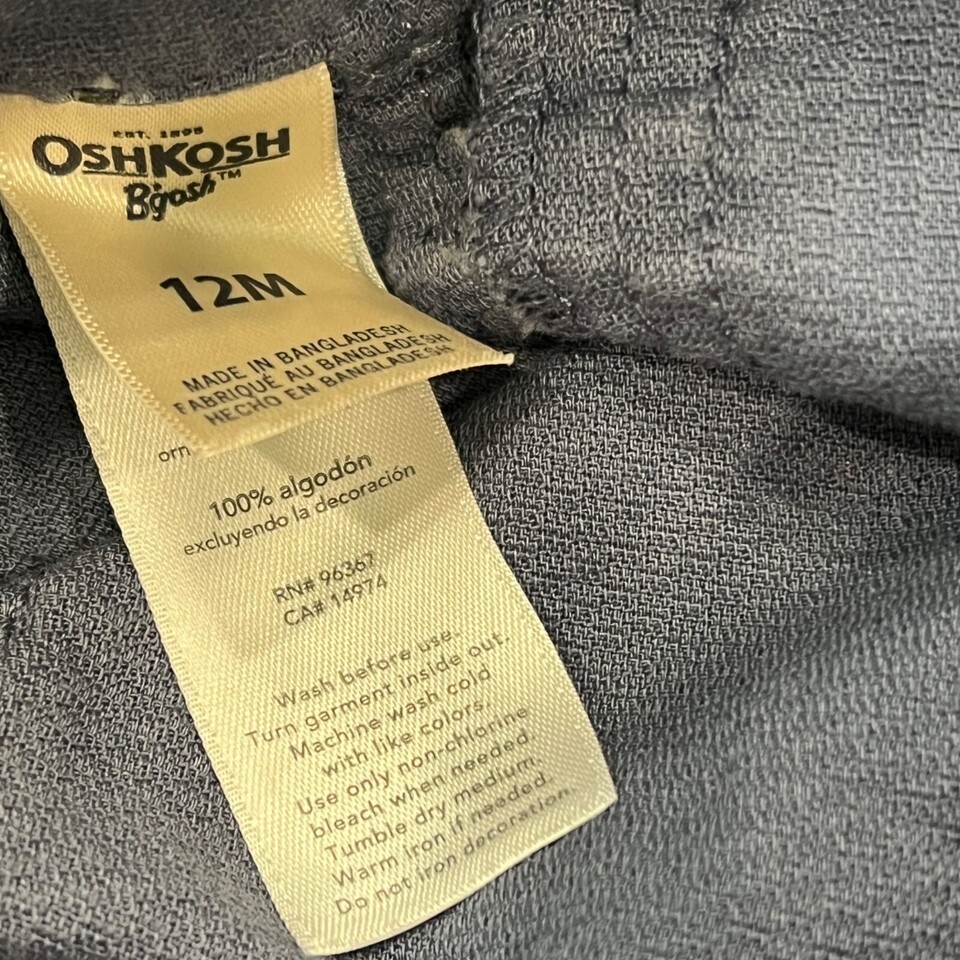 Charming vintage-inspired overalls by OshKosh B'gosh. Crafted from soft cotton and featuring an adorable blue pattern, they offer both comfort and style for your little one.