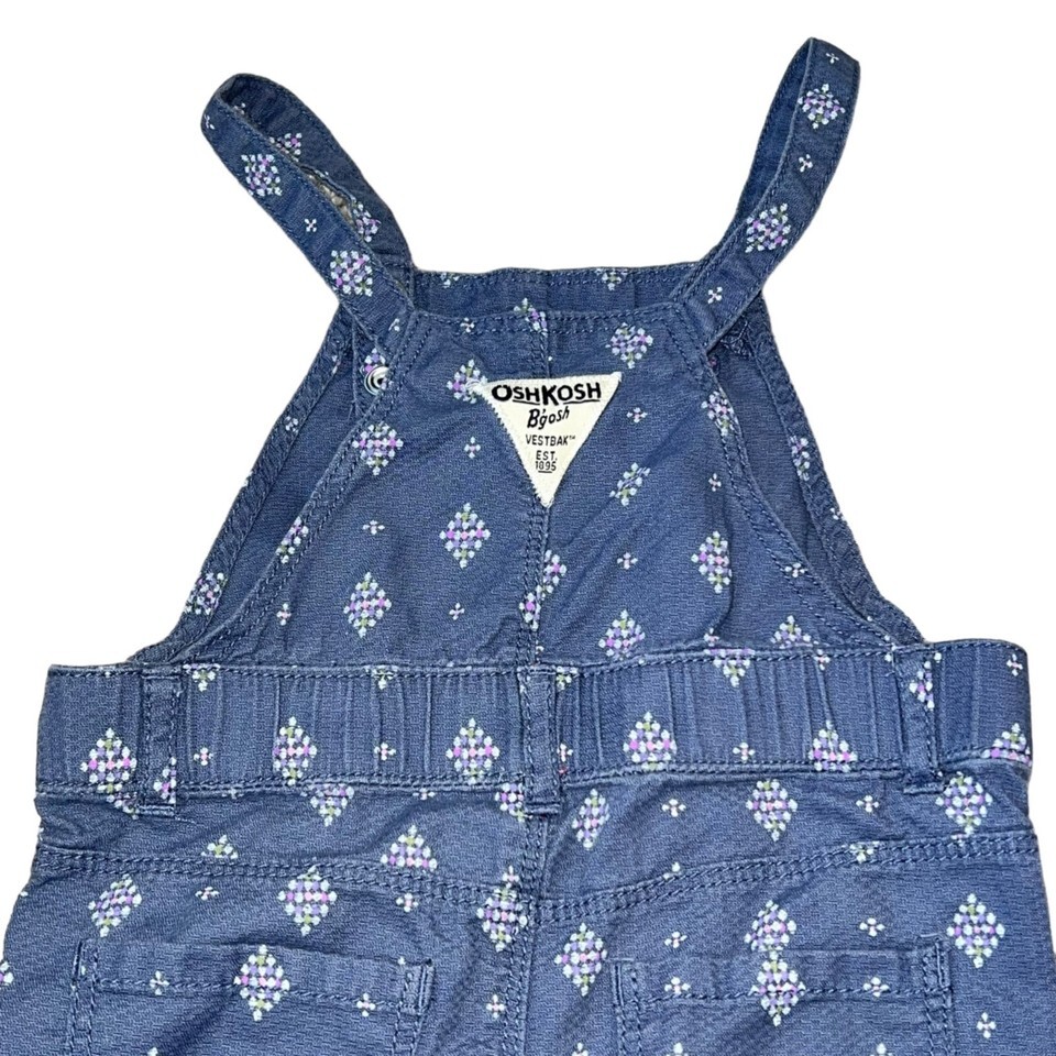 OshKosh B'gosh Girls' Vintage Blue Patterned Overalls Size 12M Cotton