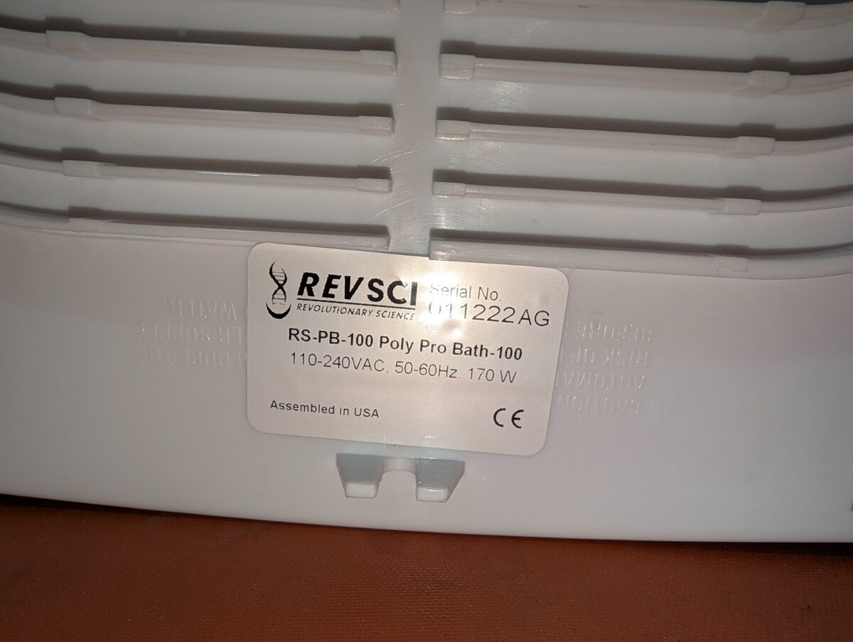 This Revolutionary Science Revsci RS-PB-100 Poly ProBath Water Bath is in new, unused condition and is guaranteed to be fully functional. This item came from a local lab that had surplus overstocked inventory. We urge customers to view all photos as they show overall condition, included accessories and useful information. Please feel free to contact us with any questions.