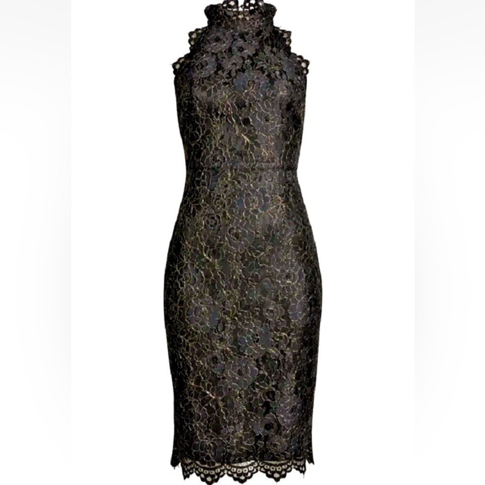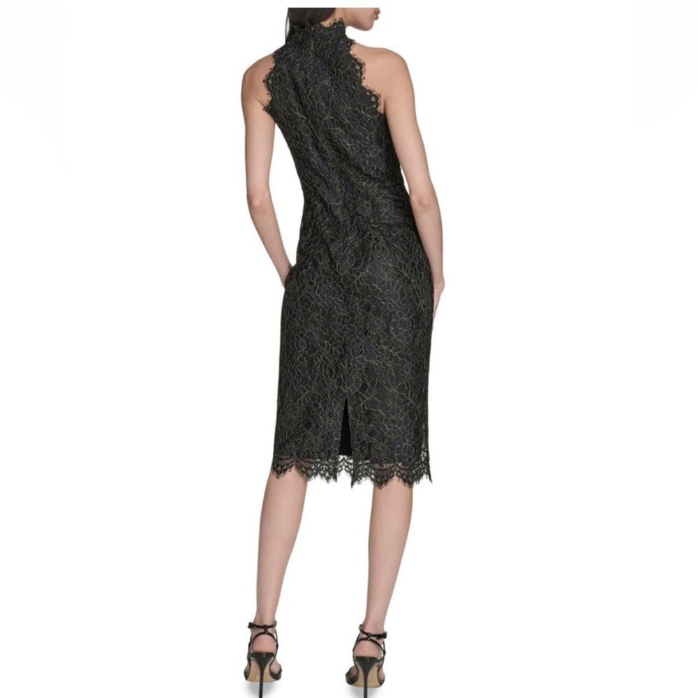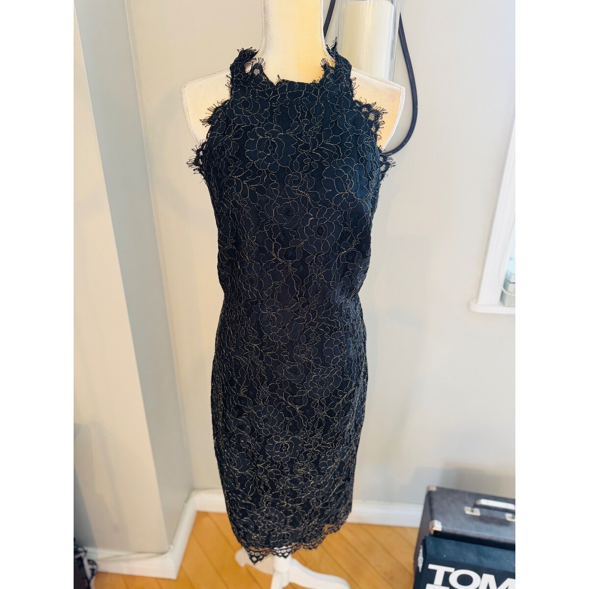Eliza J Women's Metallic Eyelash Lace Midi-Dress, Black/Gold, Size 16, NWOT