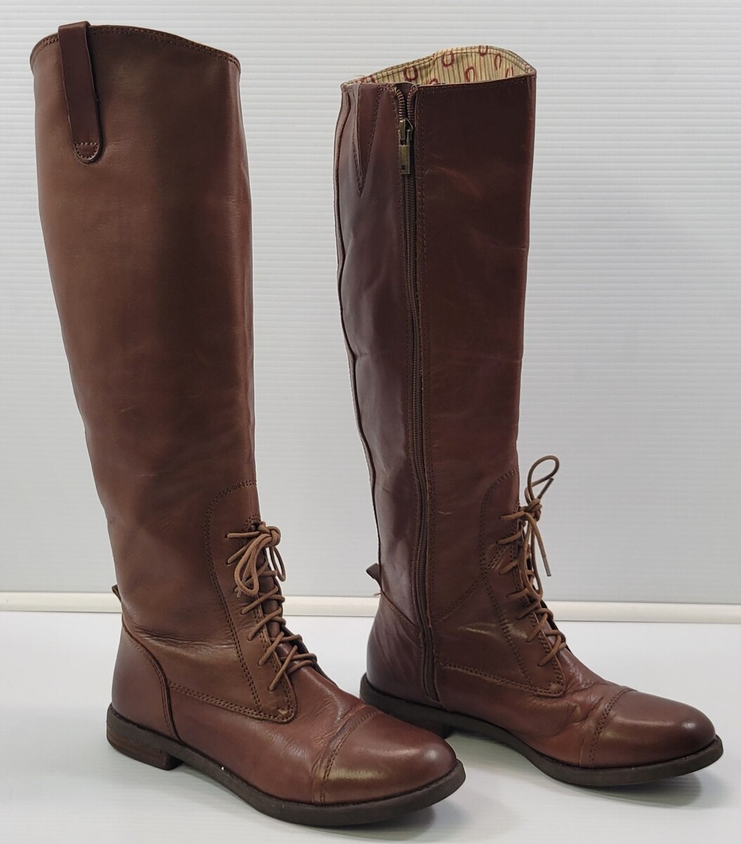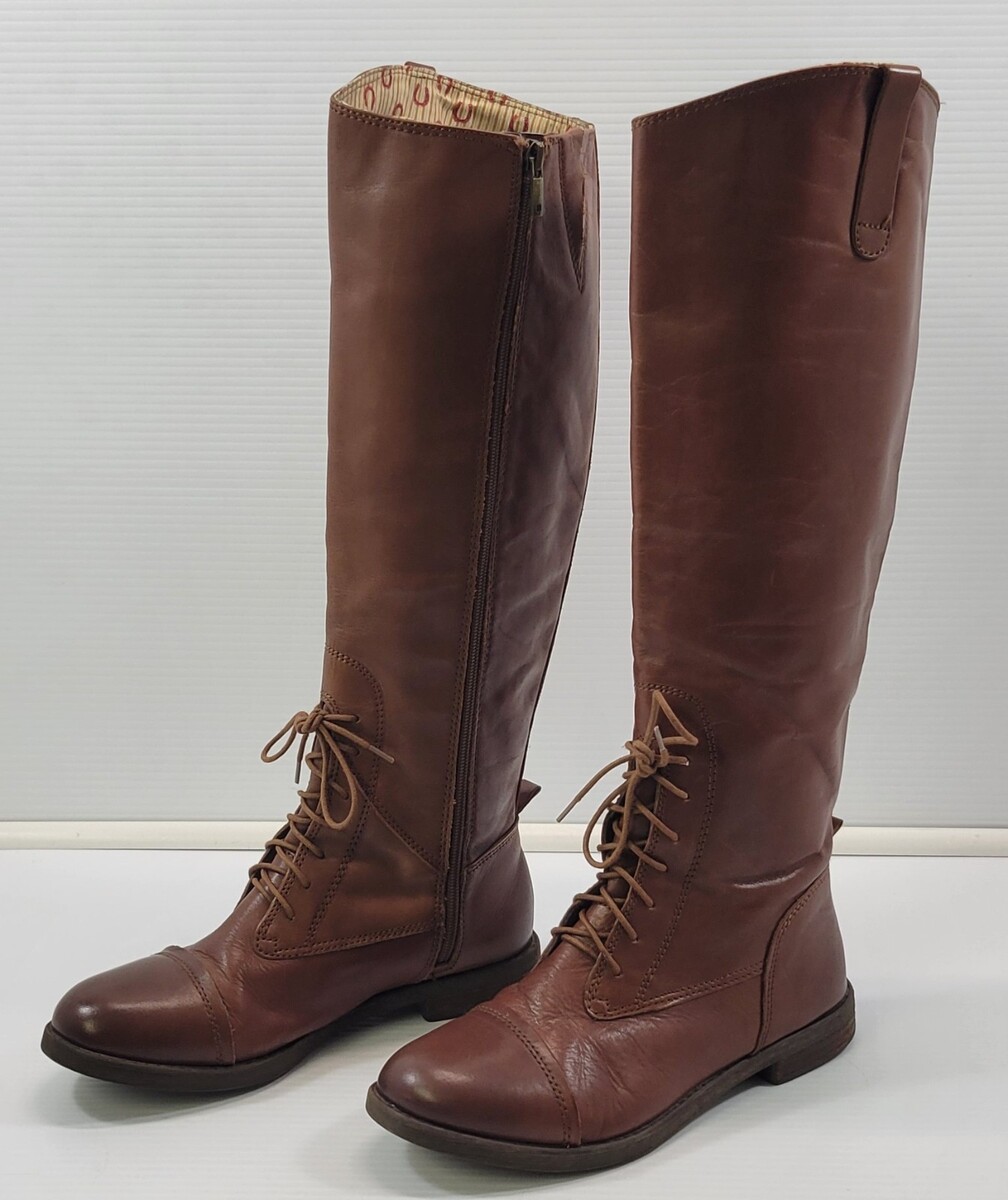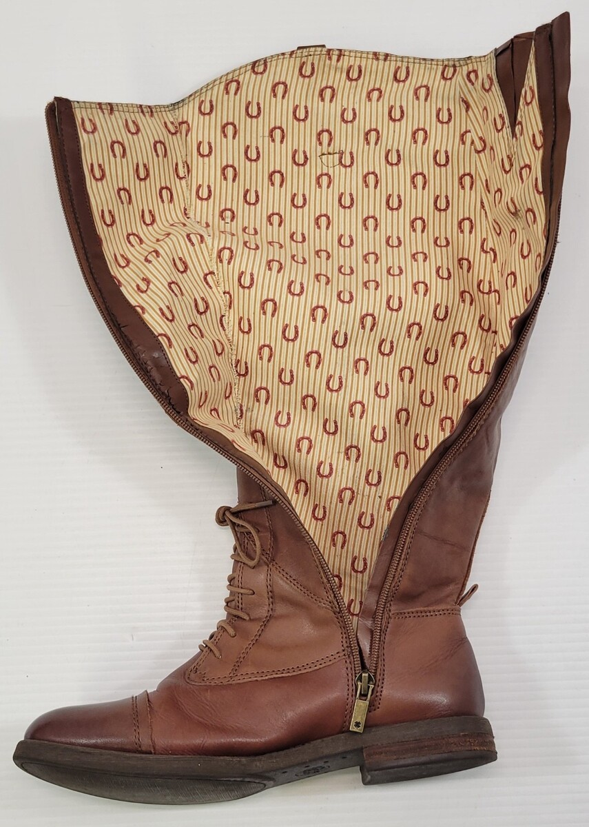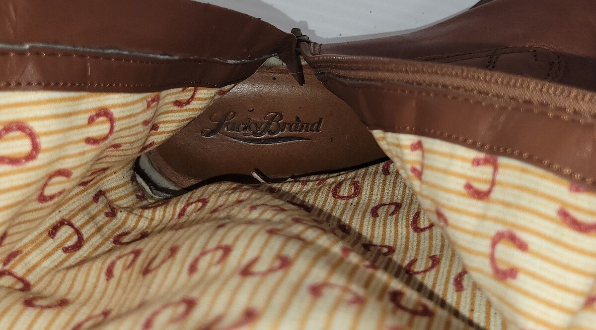 *E) Lucky Brand Woman Bourbon Vachetta Full Zip 18" Brown Boots LK-RIA 8M