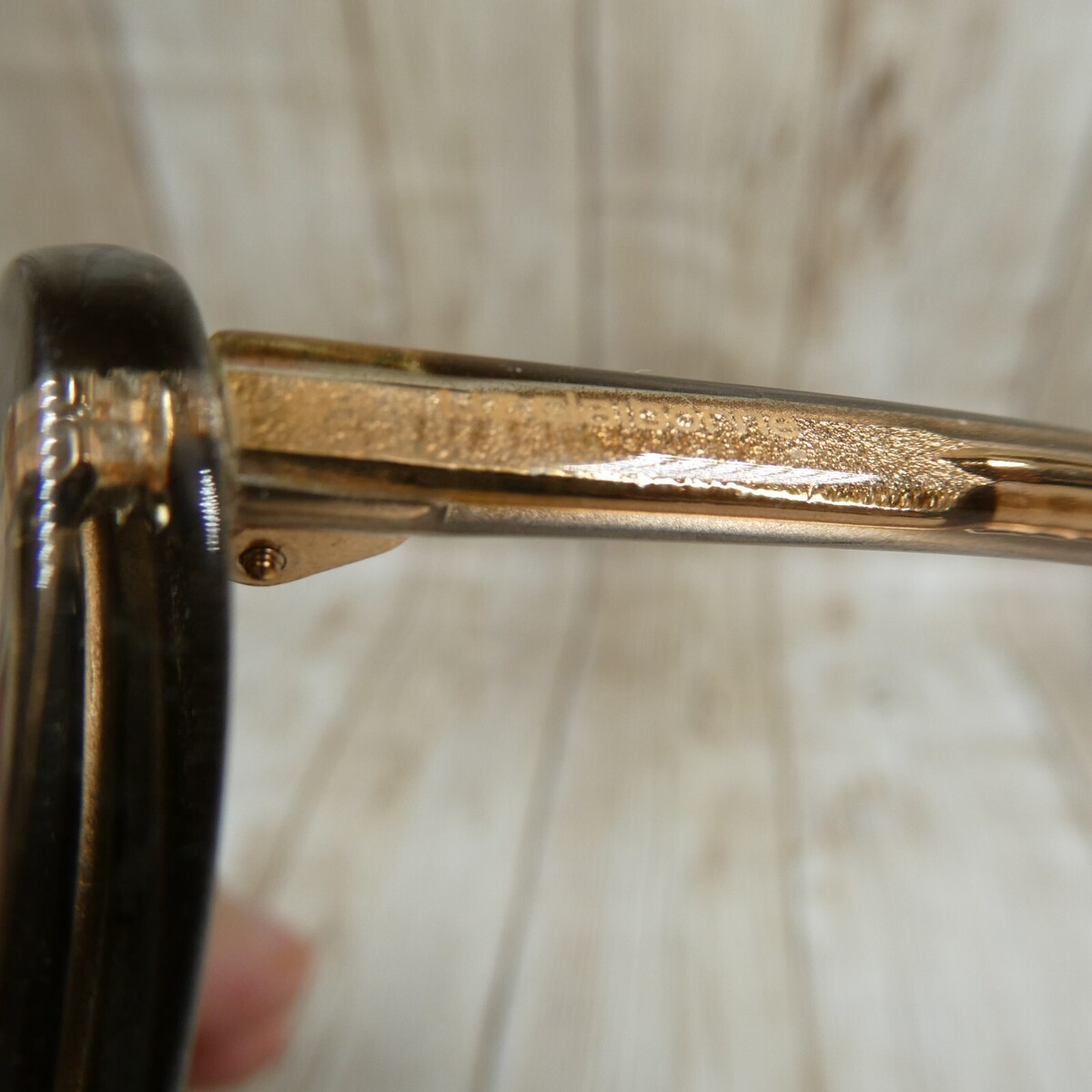 Translucent gold acetate frame.