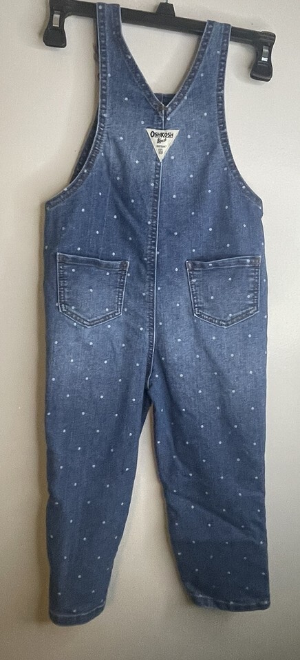 OshKosh Vestbak Overalls Girls Blue Jean Polka Dots Bibs Size 24 4T
