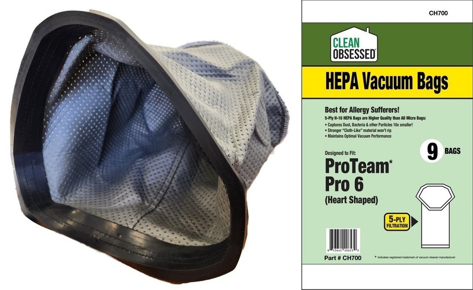 PROTEAM MICRO CLOTH BAG, HEART SHAPED (Rep'l) SUPER COACH PRO 6-SCP6, PROVAC-FS6-PVFS6, Go Free Pro, GoFree Flex Pro plus 9 hepa bags
