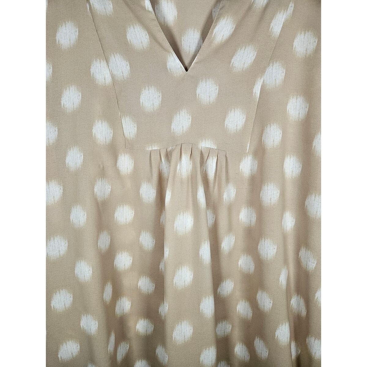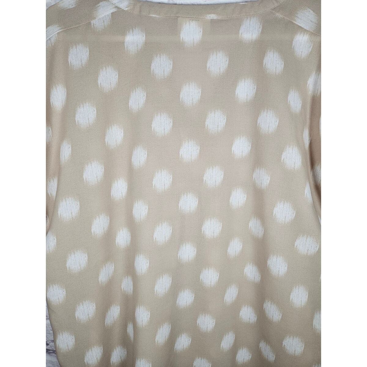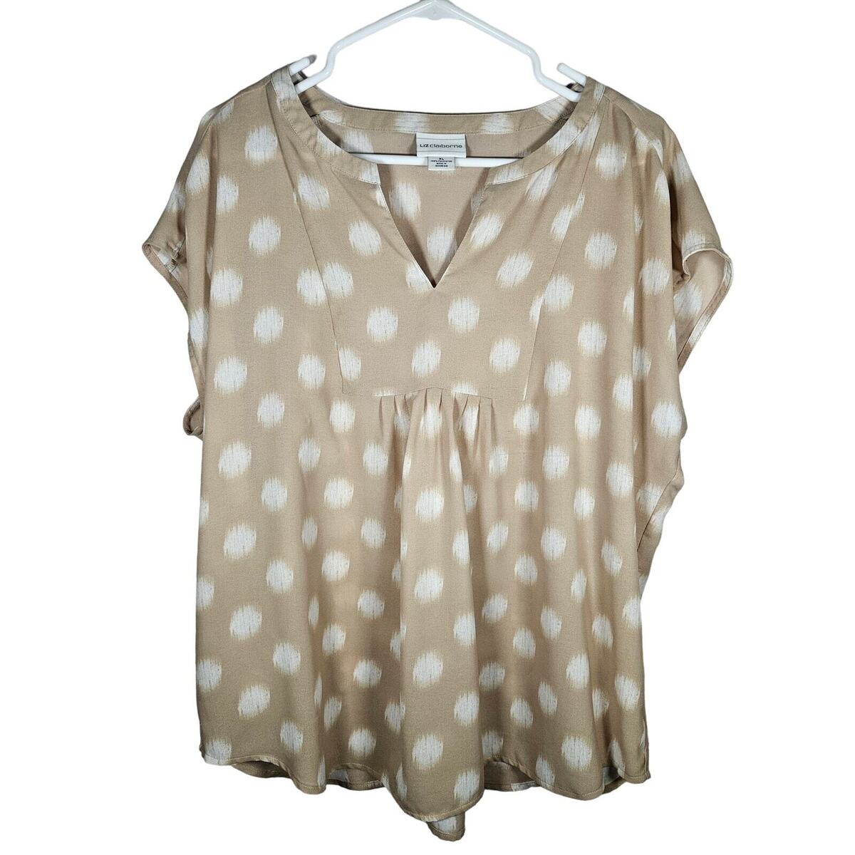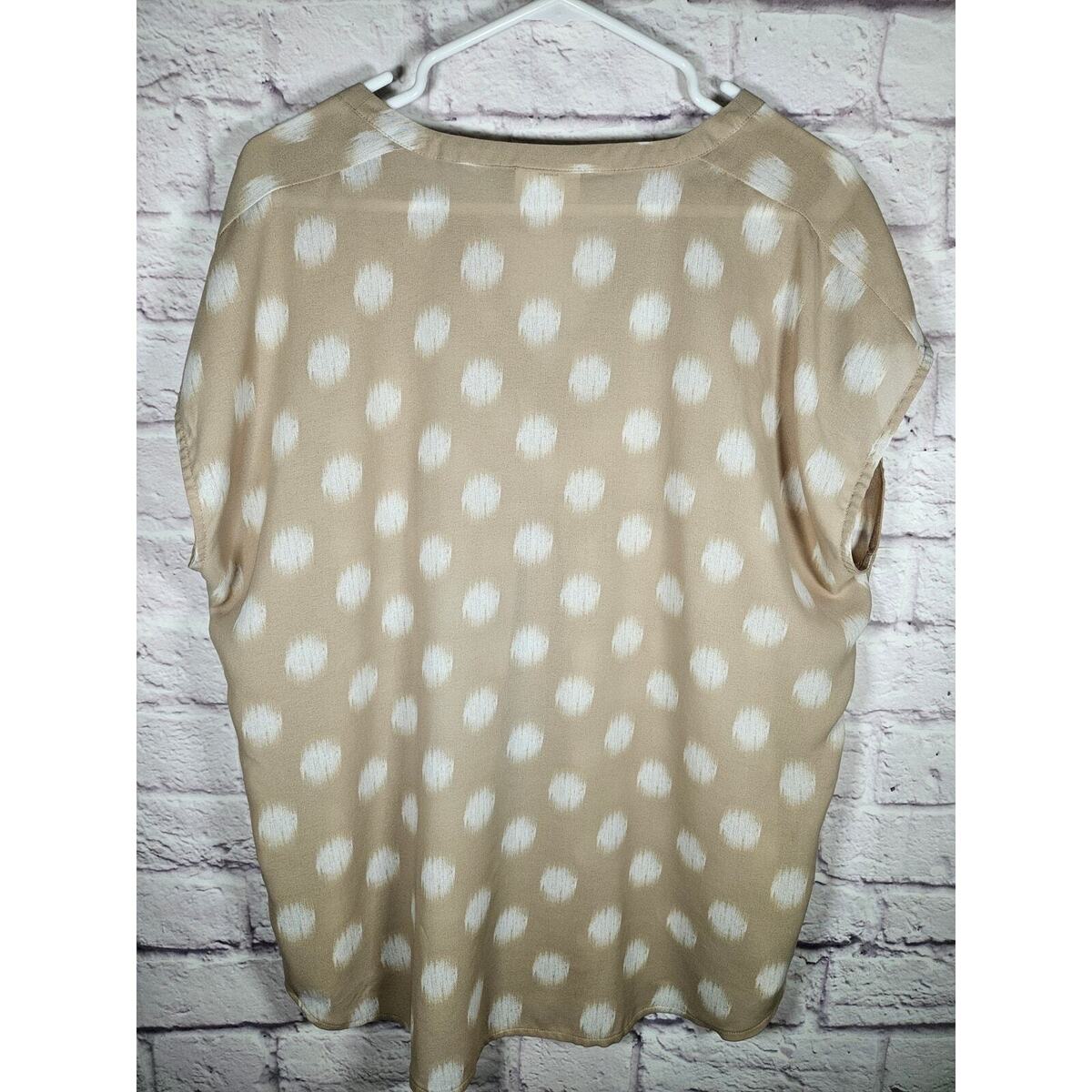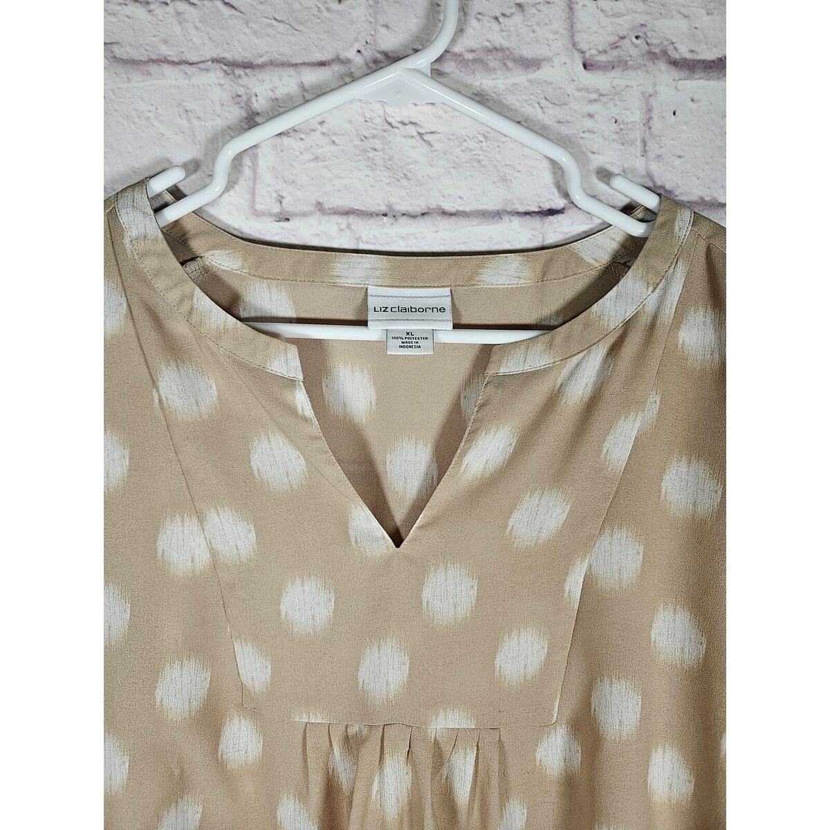 Liz Claiborne Women's Blouse Size XL Brown White Circles VNeck Short Sleeve